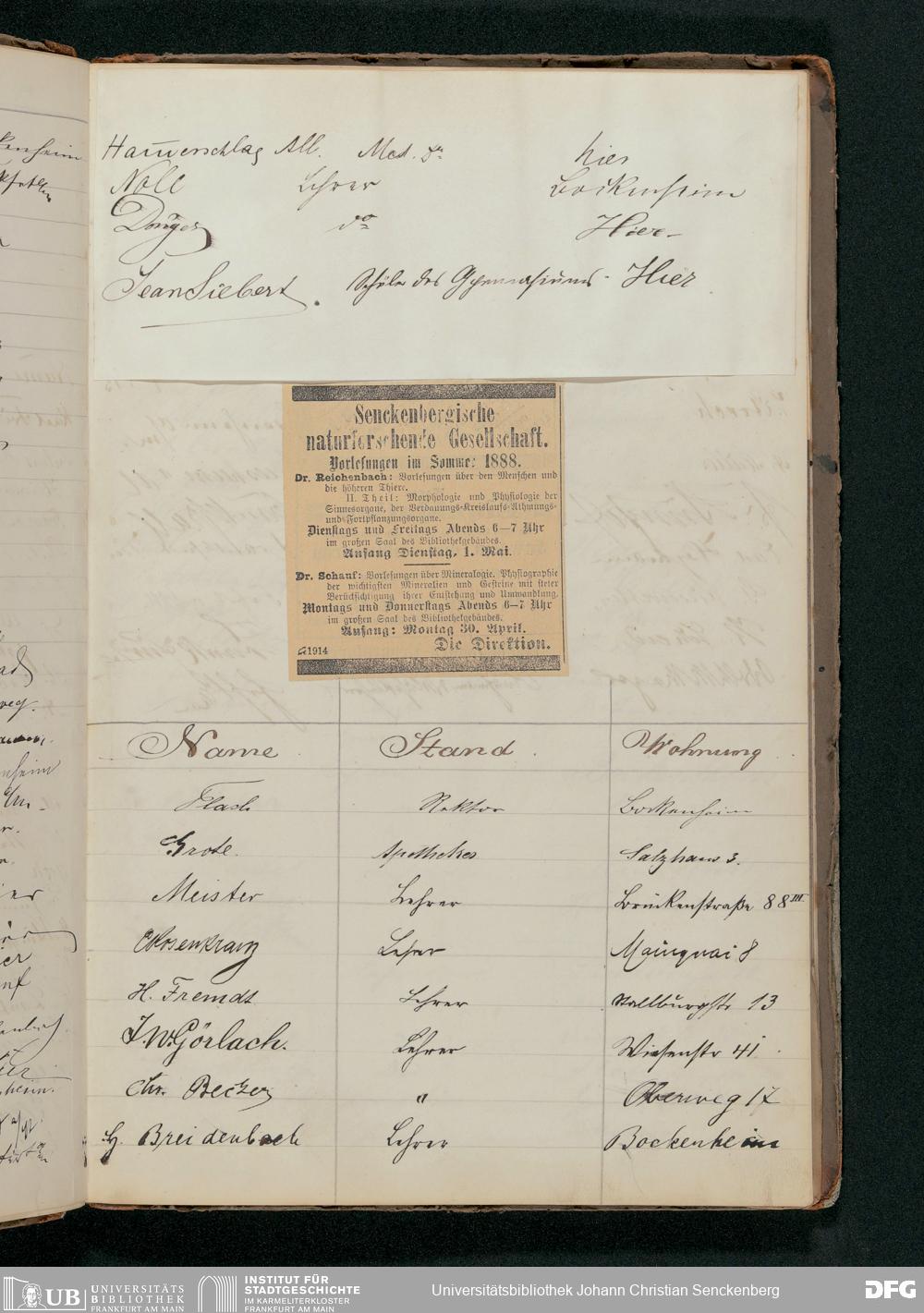 V176 Senckenberg Gesellschaft für Naturforschung, 63 - Teilnehmerlisten der Zoologievorlesungen, Bd. 4