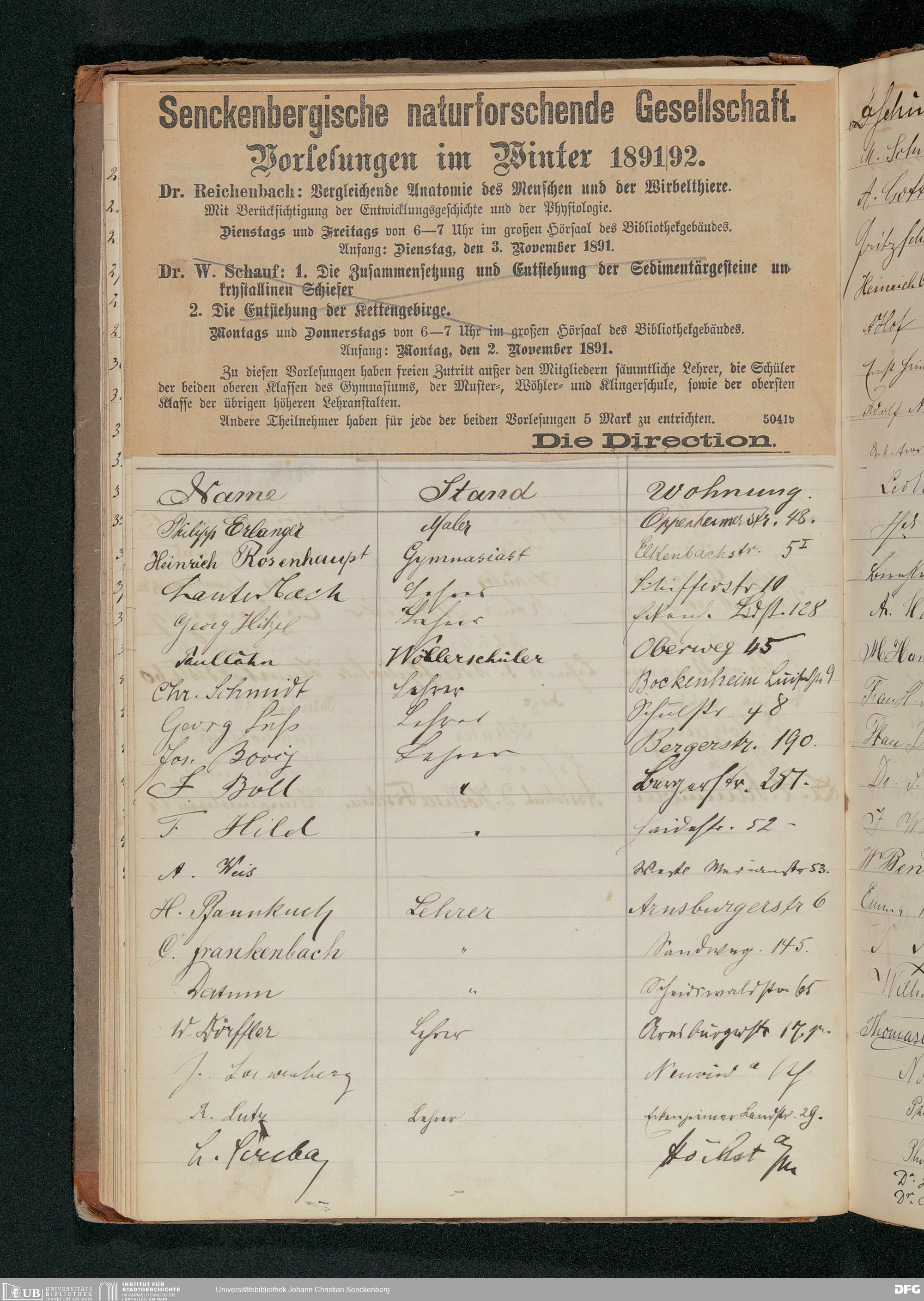 V176 Senckenberg Gesellschaft für Naturforschung, 63 - Teilnehmerlisten der Zoologievorlesungen, Bd. 4