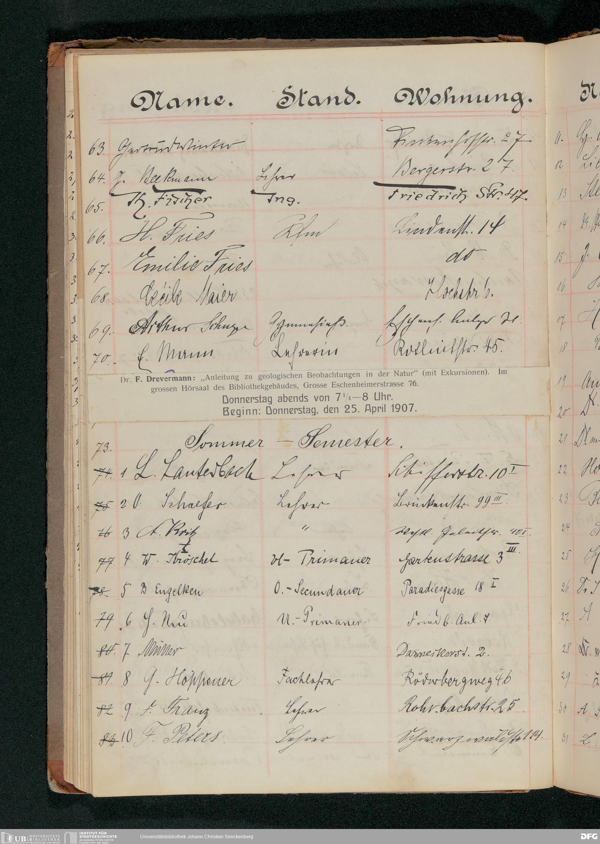 V176 Senckenberg Gesellschaft für Naturforschung, 63 - Teilnehmerlisten der Zoologievorlesungen, Bd. 4