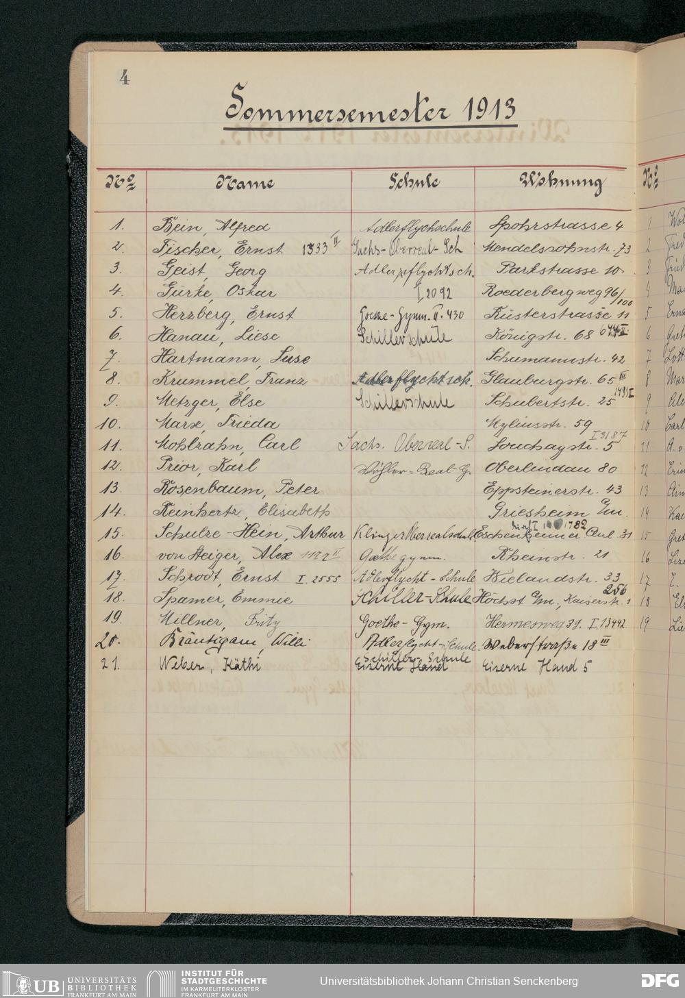 V176 Senckenberg Gesellschaft für Naturforschung, 65 - Teilnehmerlisten des zoologischen Jugendkurses