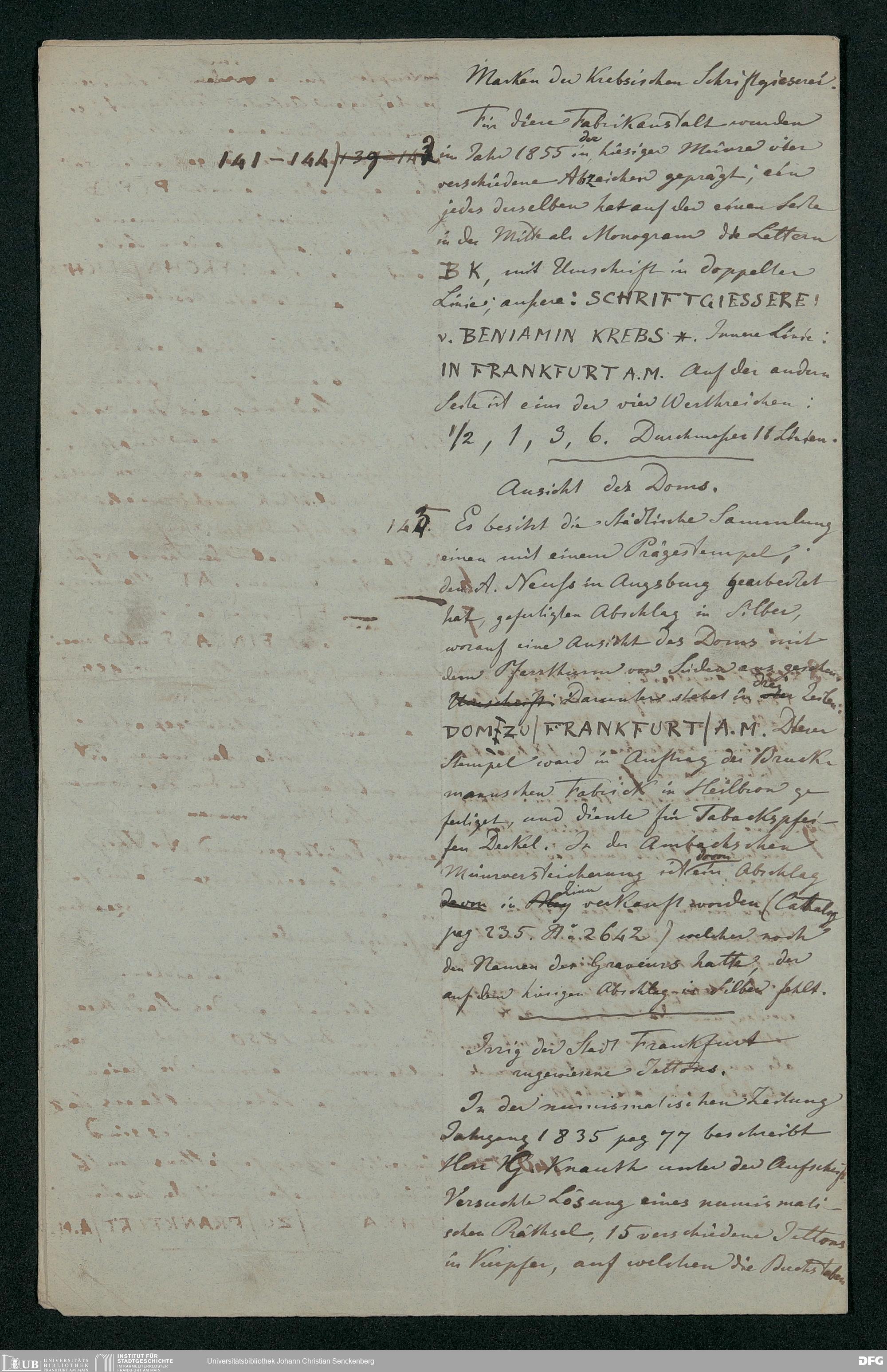 V176 Senckenberg Gesellschaft für Naturforschung, 77 - Eduard Rüppell, "Beschreibung der Münzen und Medaillen, welche wegen geschichtlicher Begebenheiten für Frankfurt gefertigt wurden sowie Preismünzen und anderer Prägestücke"