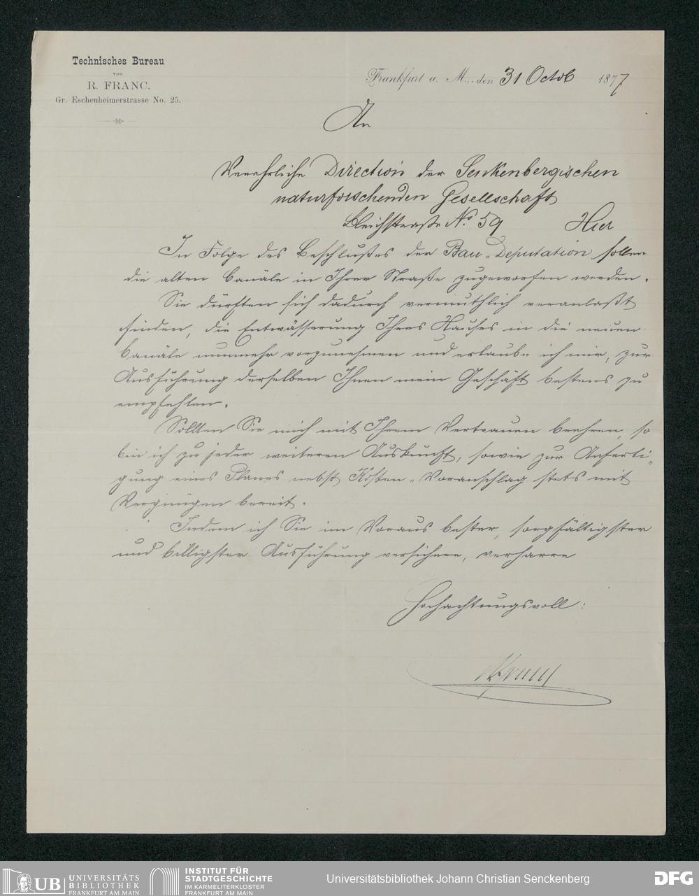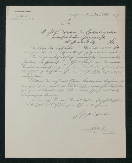 V176 Senckenberg Gesellschaft für Naturforschung, 80 - Aktenstücke zum Senckenbergmuseum und zur Senckenbergischen Naturforschenden Gesellschaft aus dem Besitz von Eduard Rüppell