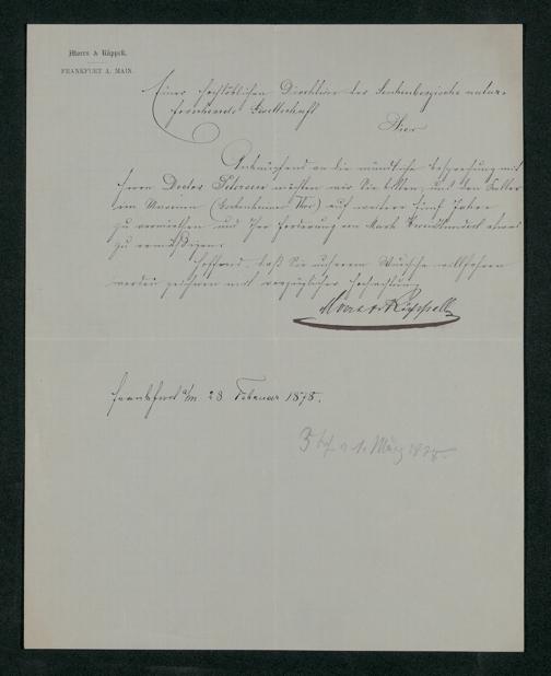 V176 Senckenberg Gesellschaft für Naturforschung, 80 - Aktenstücke zum Senckenbergmuseum und zur Senckenbergischen Naturforschenden Gesellschaft aus dem Besitz von Eduard Rüppell