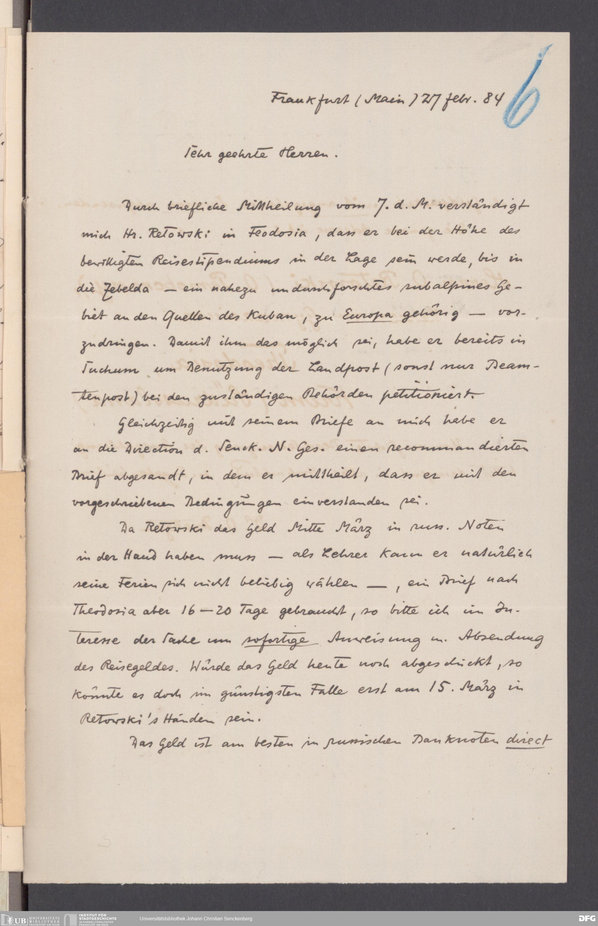 V176 Senckenberg Gesellschaft für Naturforschung, 83 - Rüppell-Stiftung zur finanziellen Unterstützung selbständiger Forschungsreisen