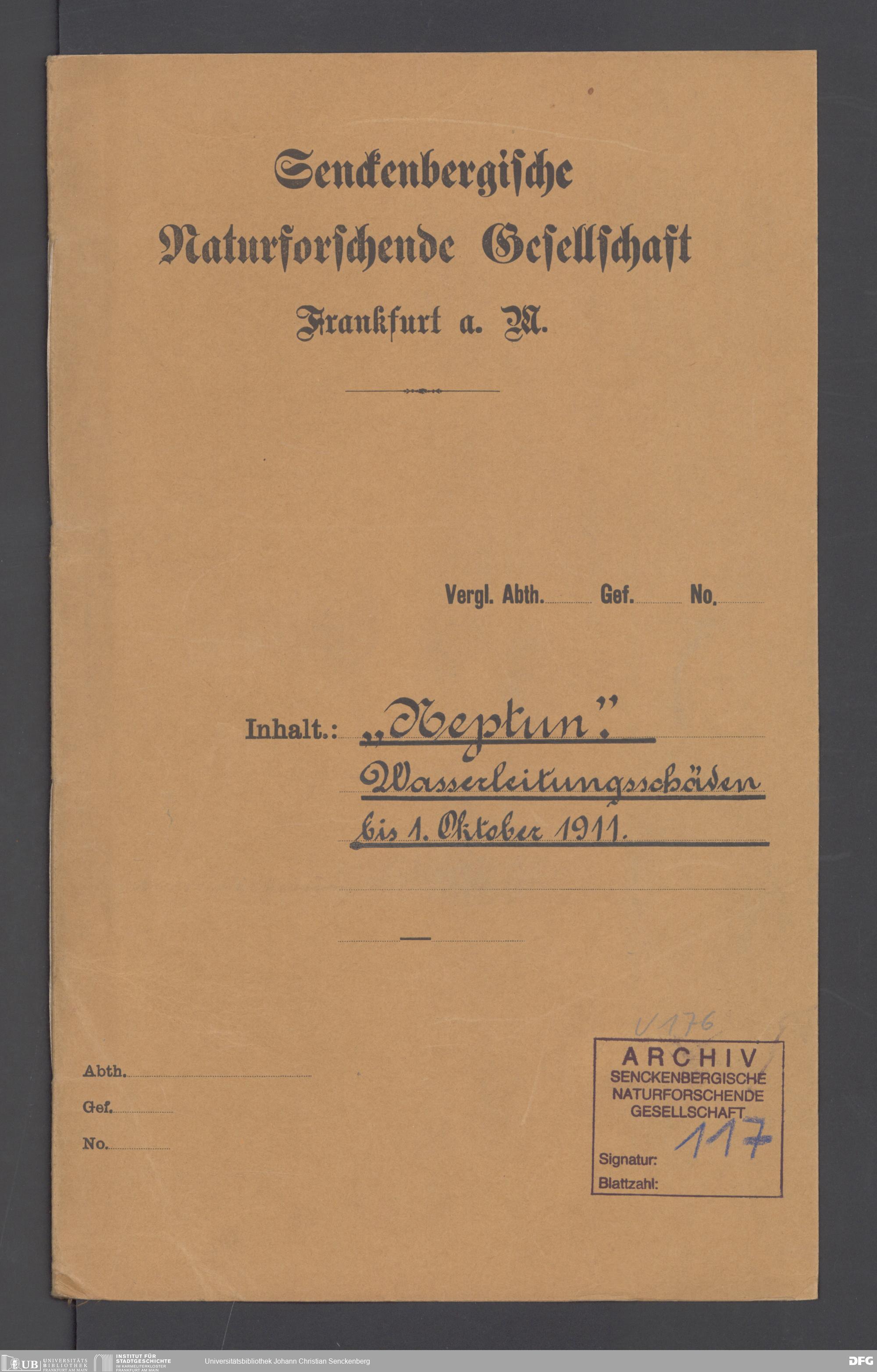 V176 Senckenberg Gesellschaft für Naturforschung, 117 - Versicherung gegen Wasserschäden