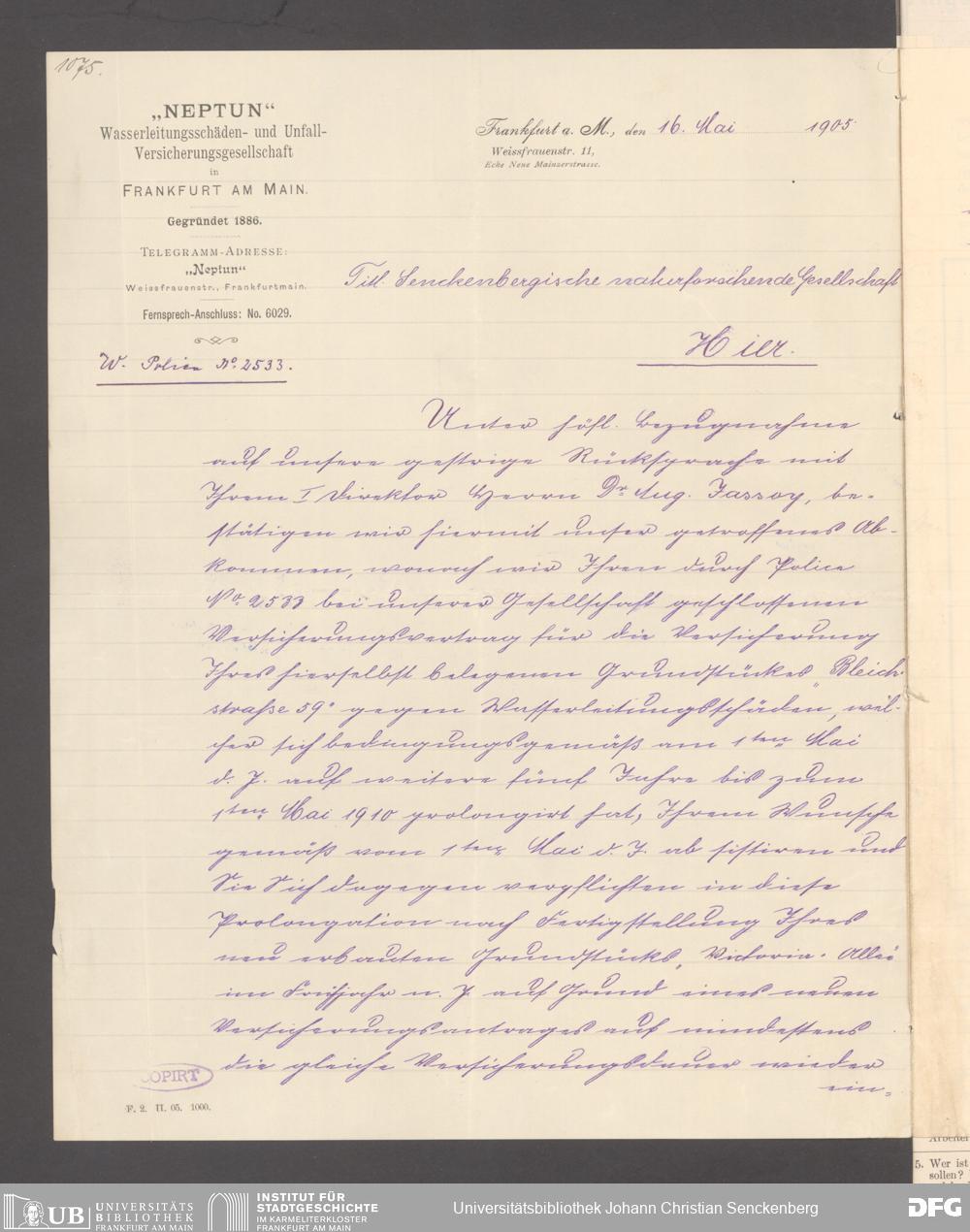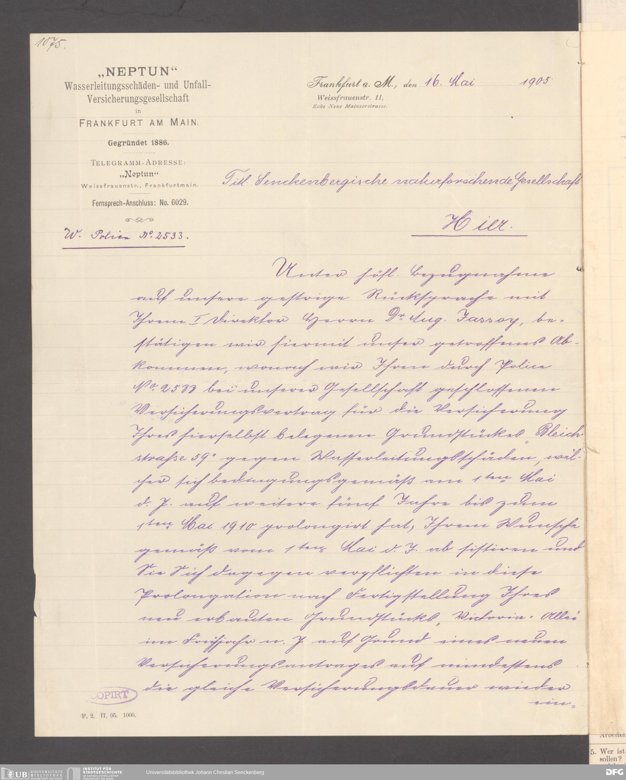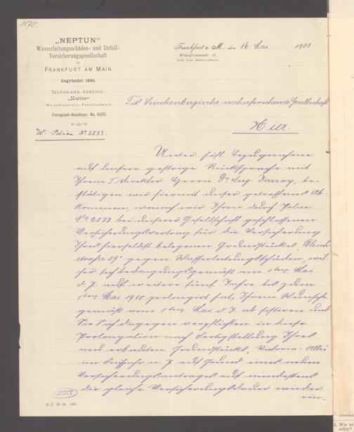 V176 Senckenberg Gesellschaft für Naturforschung, 117 - Versicherung gegen Wasserschäden