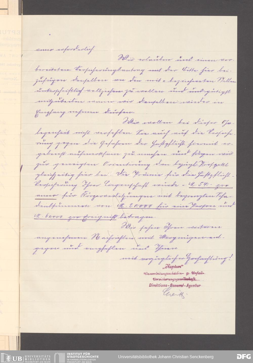 V176 Senckenberg Gesellschaft für Naturforschung, 117 - Versicherung gegen Wasserschäden