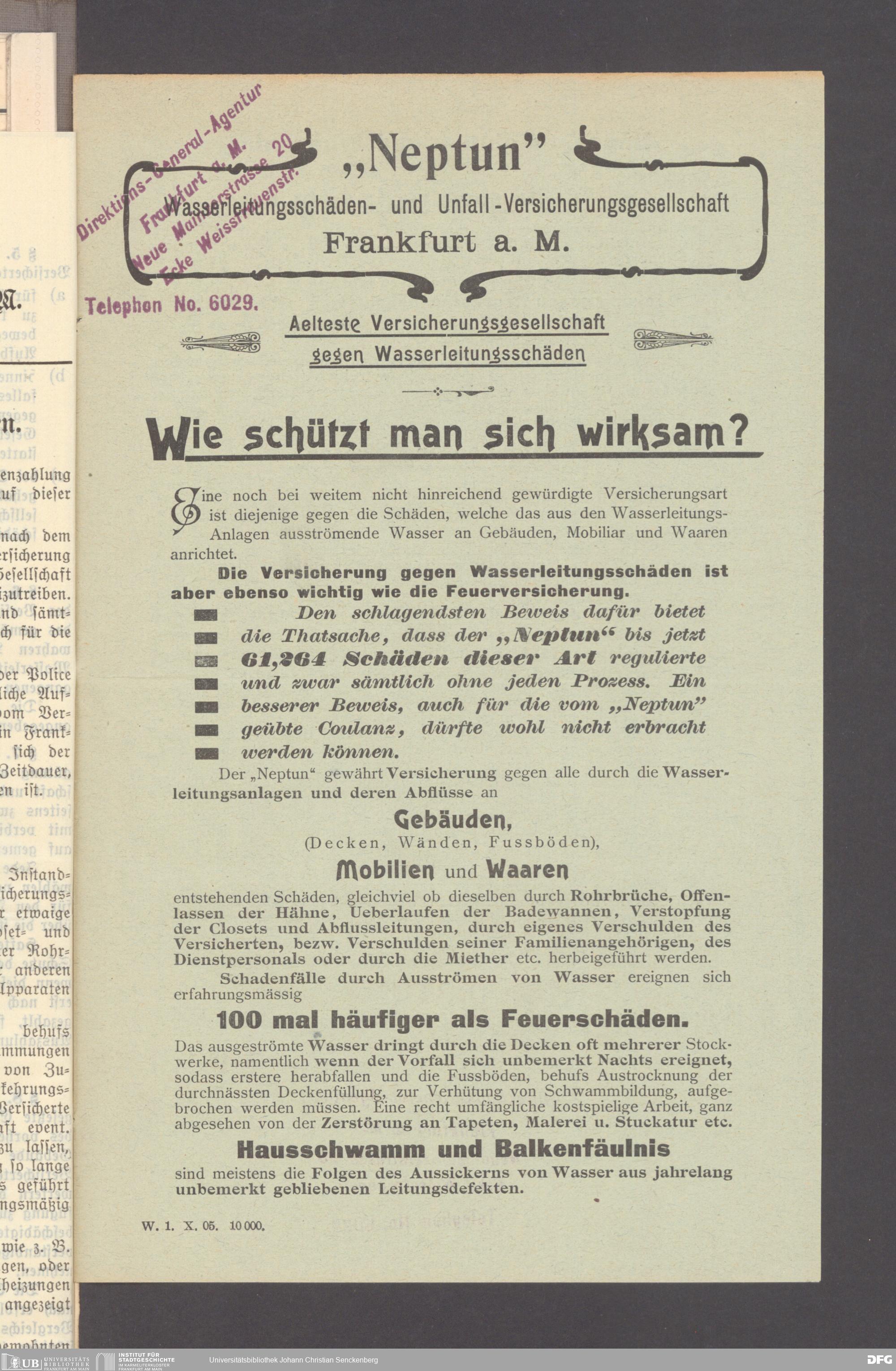 V176 Senckenberg Gesellschaft für Naturforschung, 117 - Versicherung gegen Wasserschäden