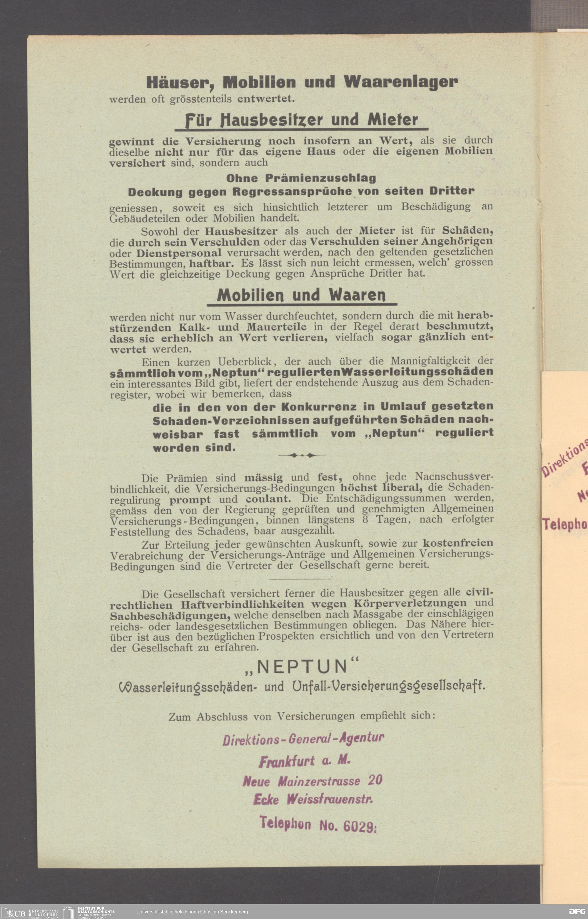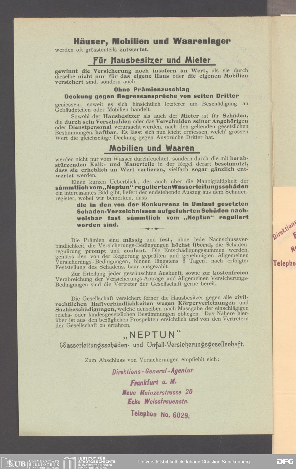 V176 Senckenberg Gesellschaft für Naturforschung, 117 - Versicherung gegen Wasserschäden