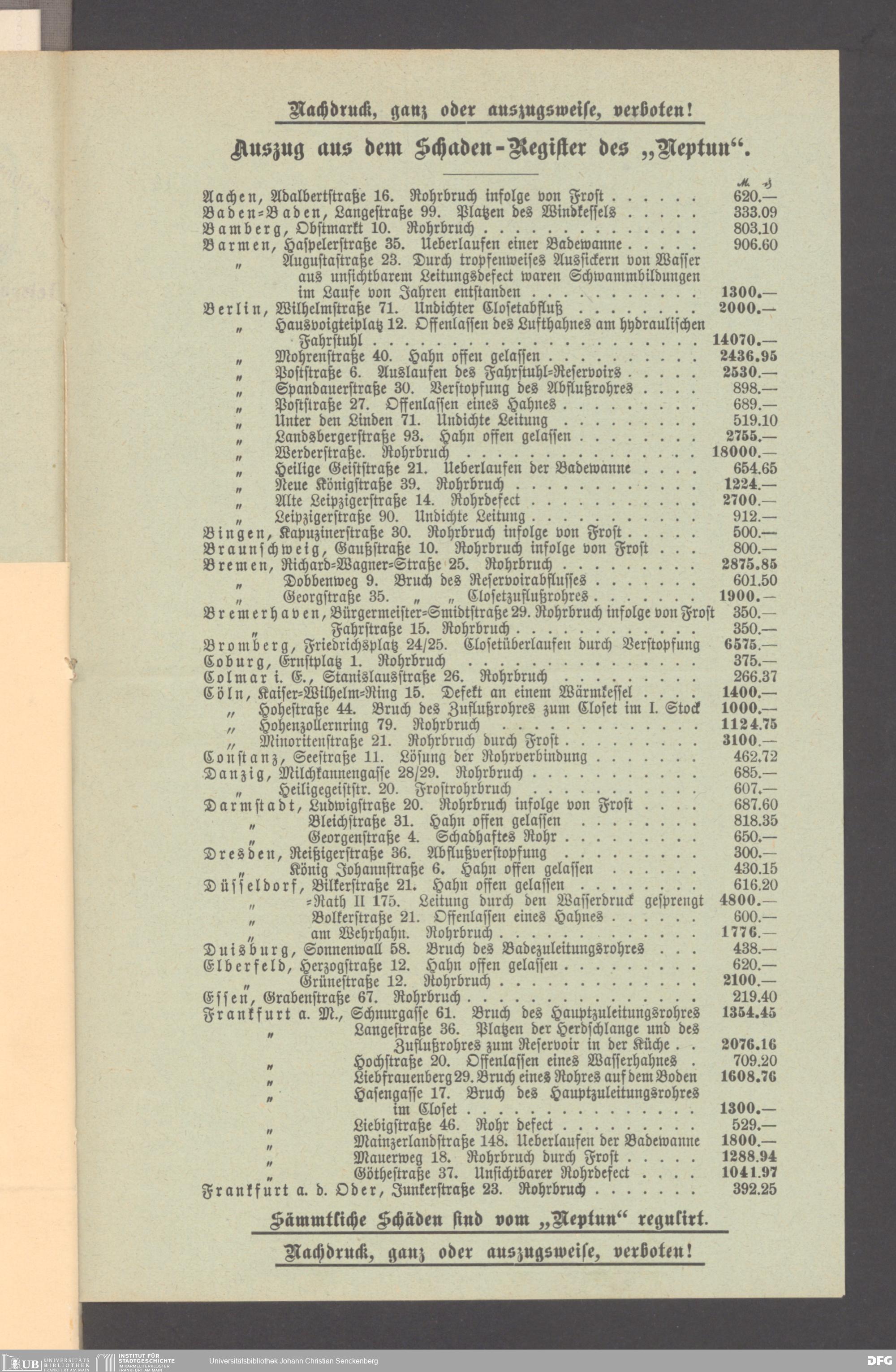 V176 Senckenberg Gesellschaft für Naturforschung, 117 - Versicherung gegen Wasserschäden