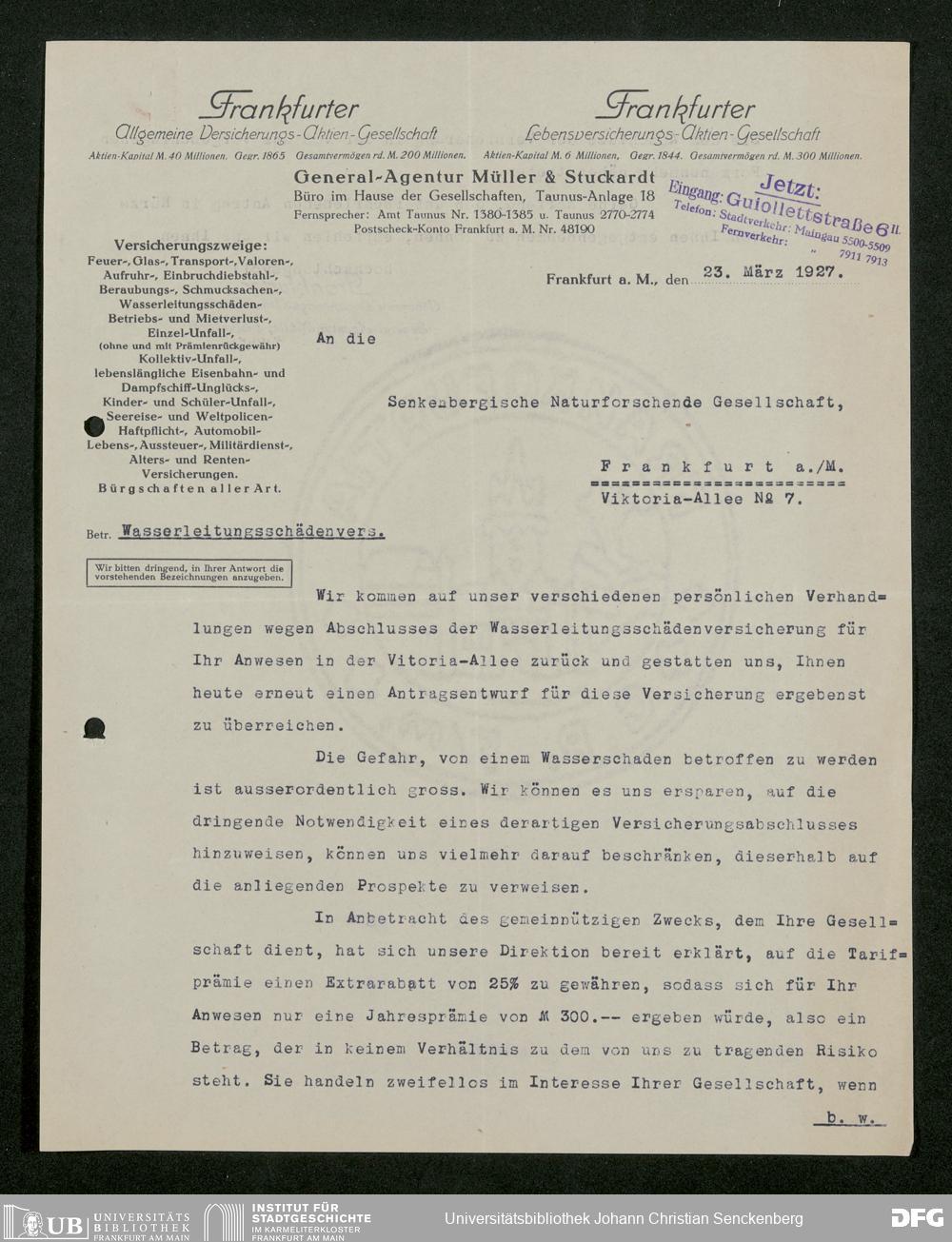 V176 Senckenberg Gesellschaft für Naturforschung, 117 - Versicherung gegen Wasserschäden