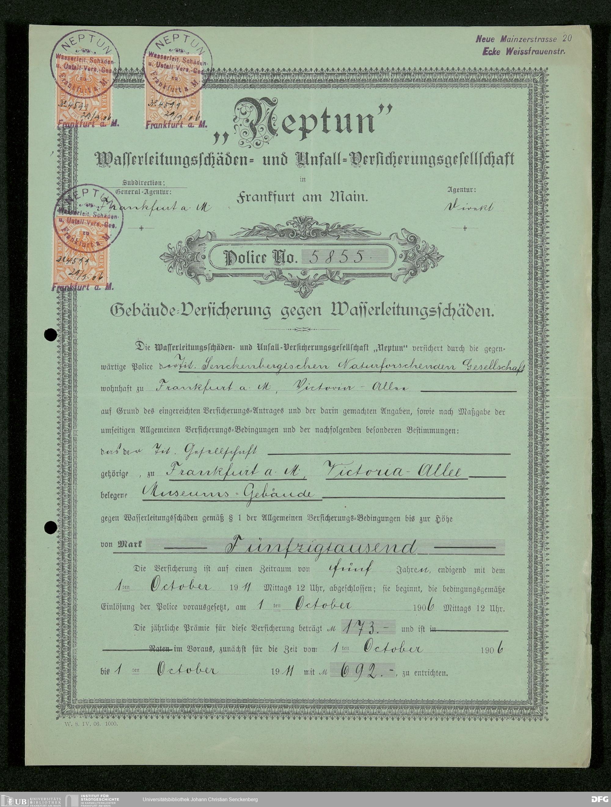 V176 Senckenberg Gesellschaft für Naturforschung, 117 - Versicherung gegen Wasserschäden