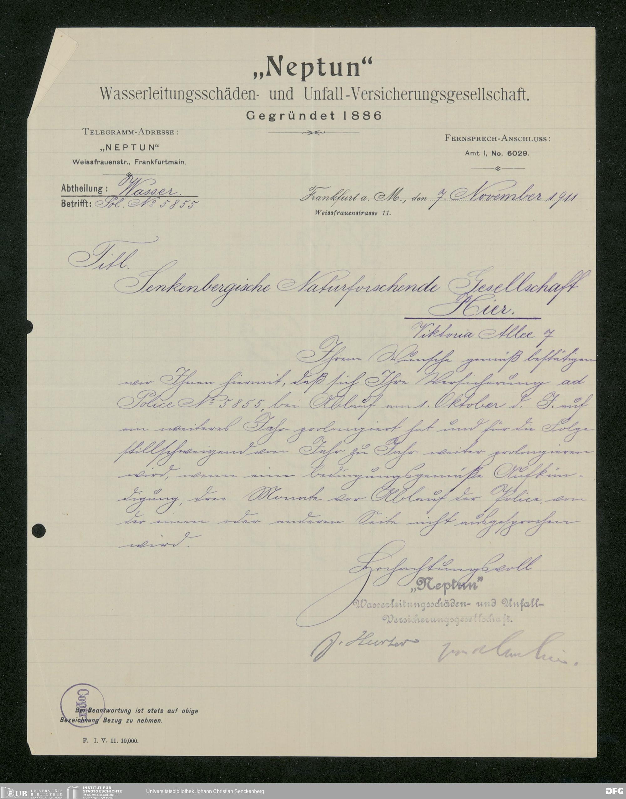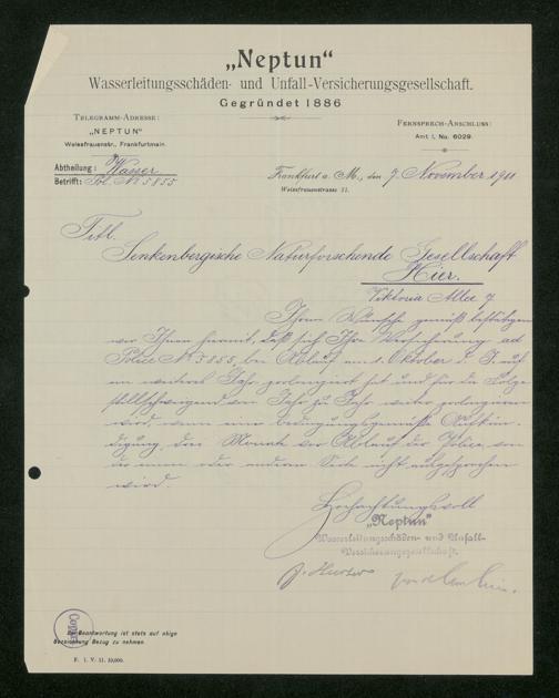 V176 Senckenberg Gesellschaft für Naturforschung, 117 - Versicherung gegen Wasserschäden