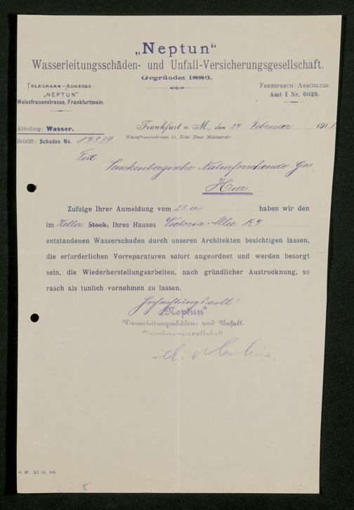 V176 Senckenberg Gesellschaft für Naturforschung, 117 - Versicherung gegen Wasserschäden