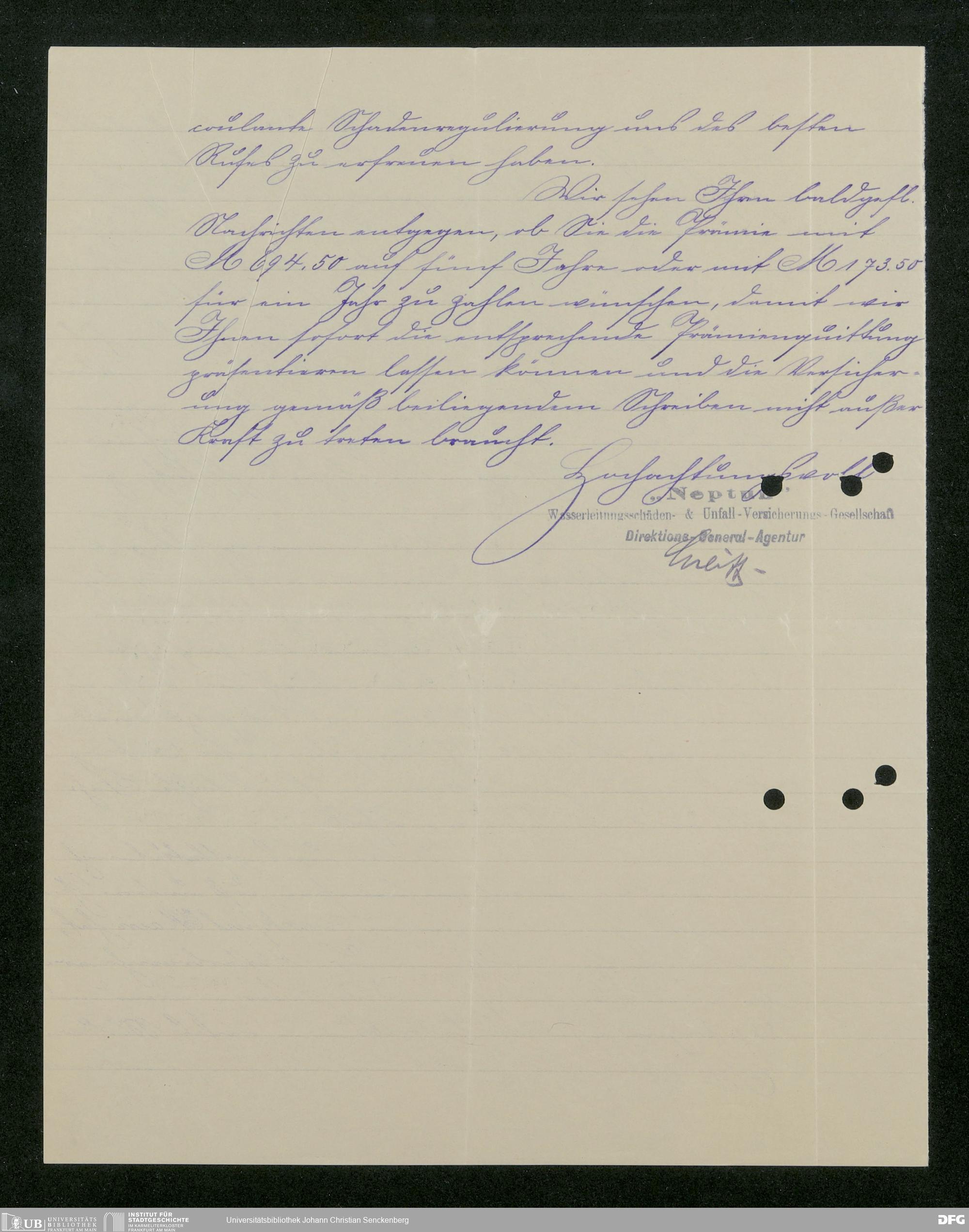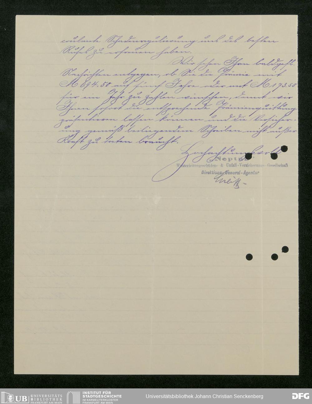 V176 Senckenberg Gesellschaft für Naturforschung, 117 - Versicherung gegen Wasserschäden