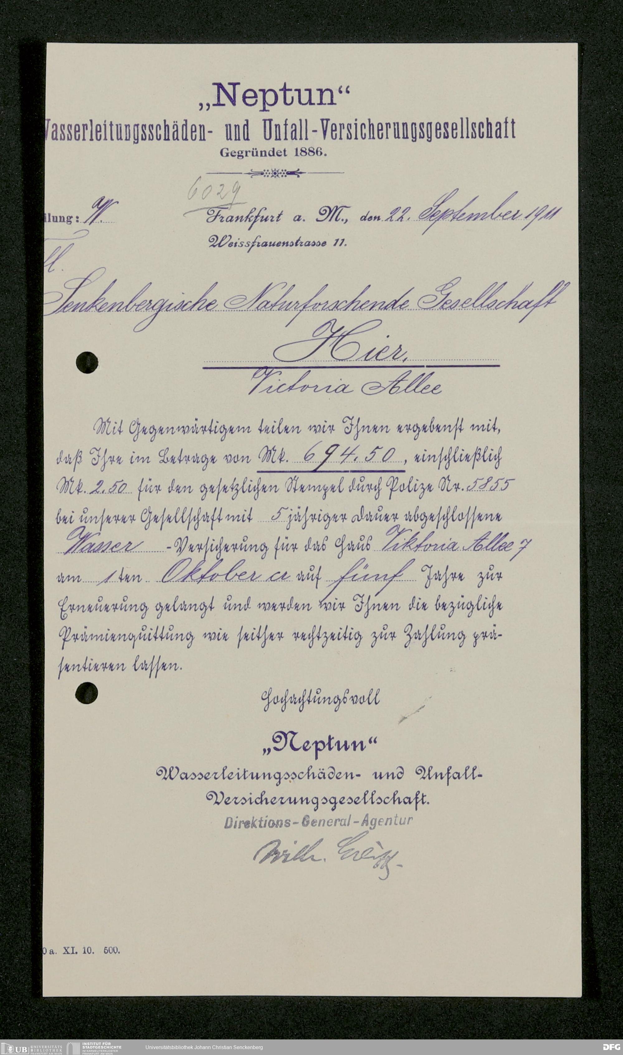 V176 Senckenberg Gesellschaft für Naturforschung, 117 - Versicherung gegen Wasserschäden