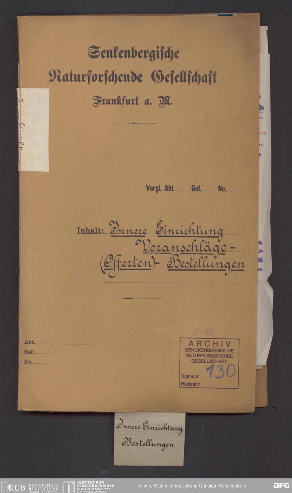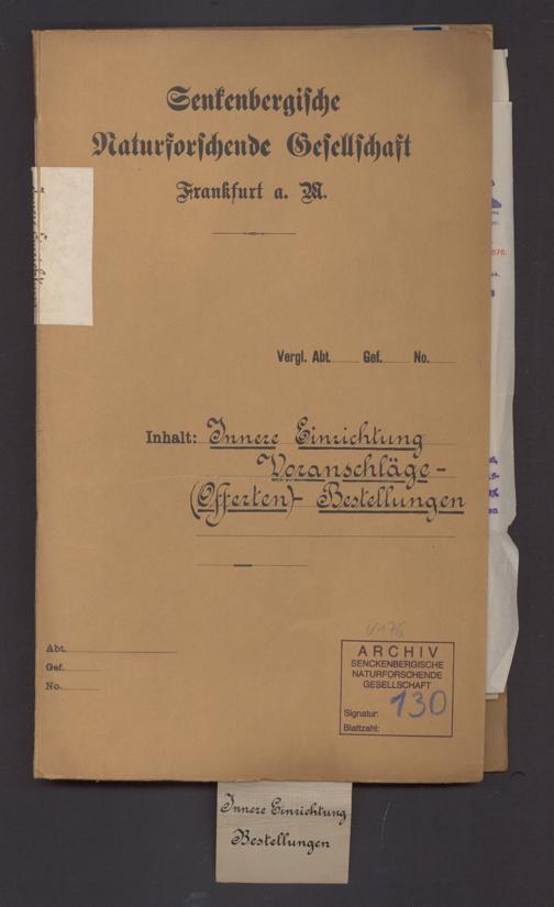V176 Senckenberg Gesellschaft für Naturforschung, 130 - Beschaffung der Inneneinrichtung für den Neubau des Senckenbergmuseums