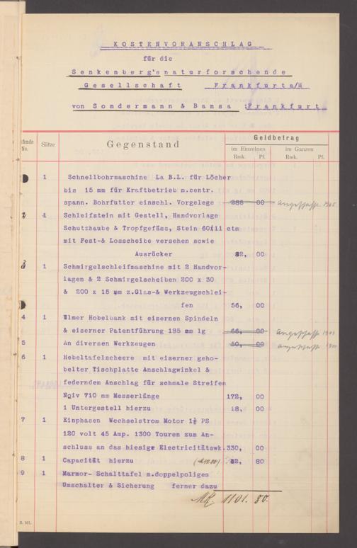 V176 Senckenberg Gesellschaft für Naturforschung, 130 - Beschaffung der Inneneinrichtung für den Neubau des Senckenbergmuseums
