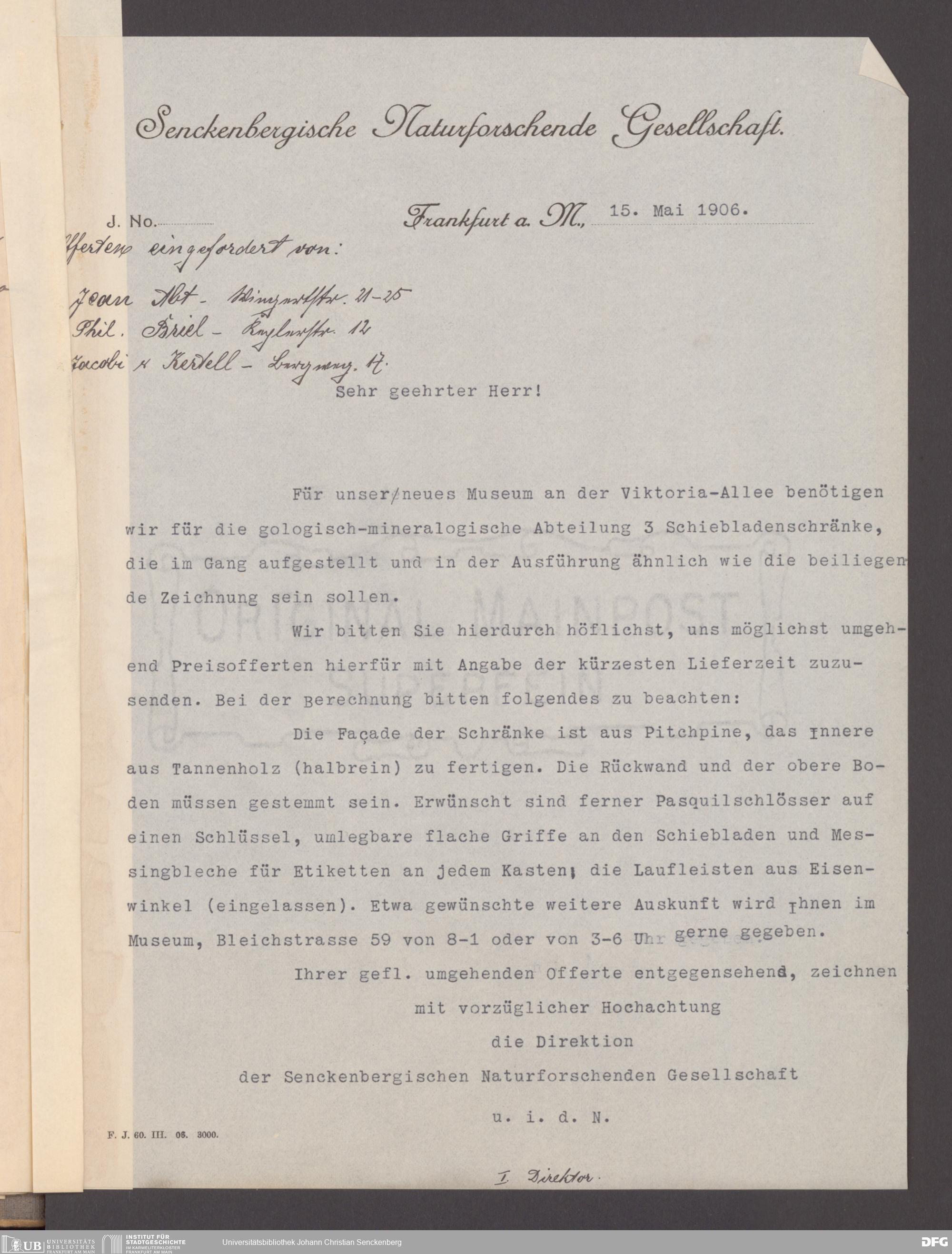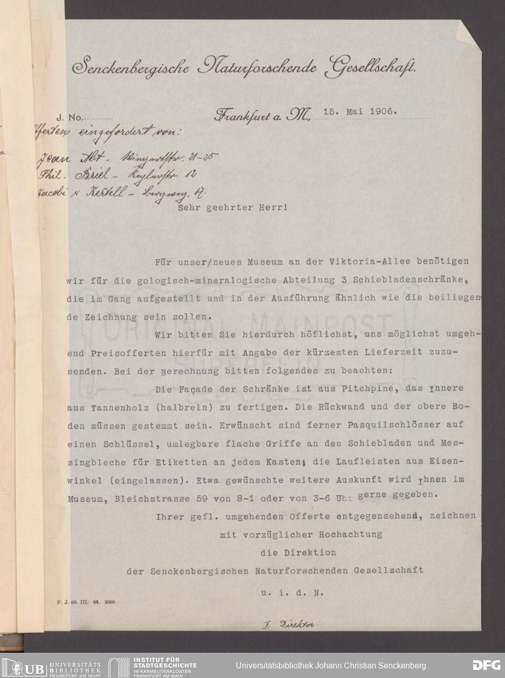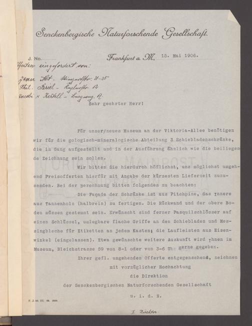 V176 Senckenberg Gesellschaft für Naturforschung, 130 - Beschaffung der Inneneinrichtung für den Neubau des Senckenbergmuseums