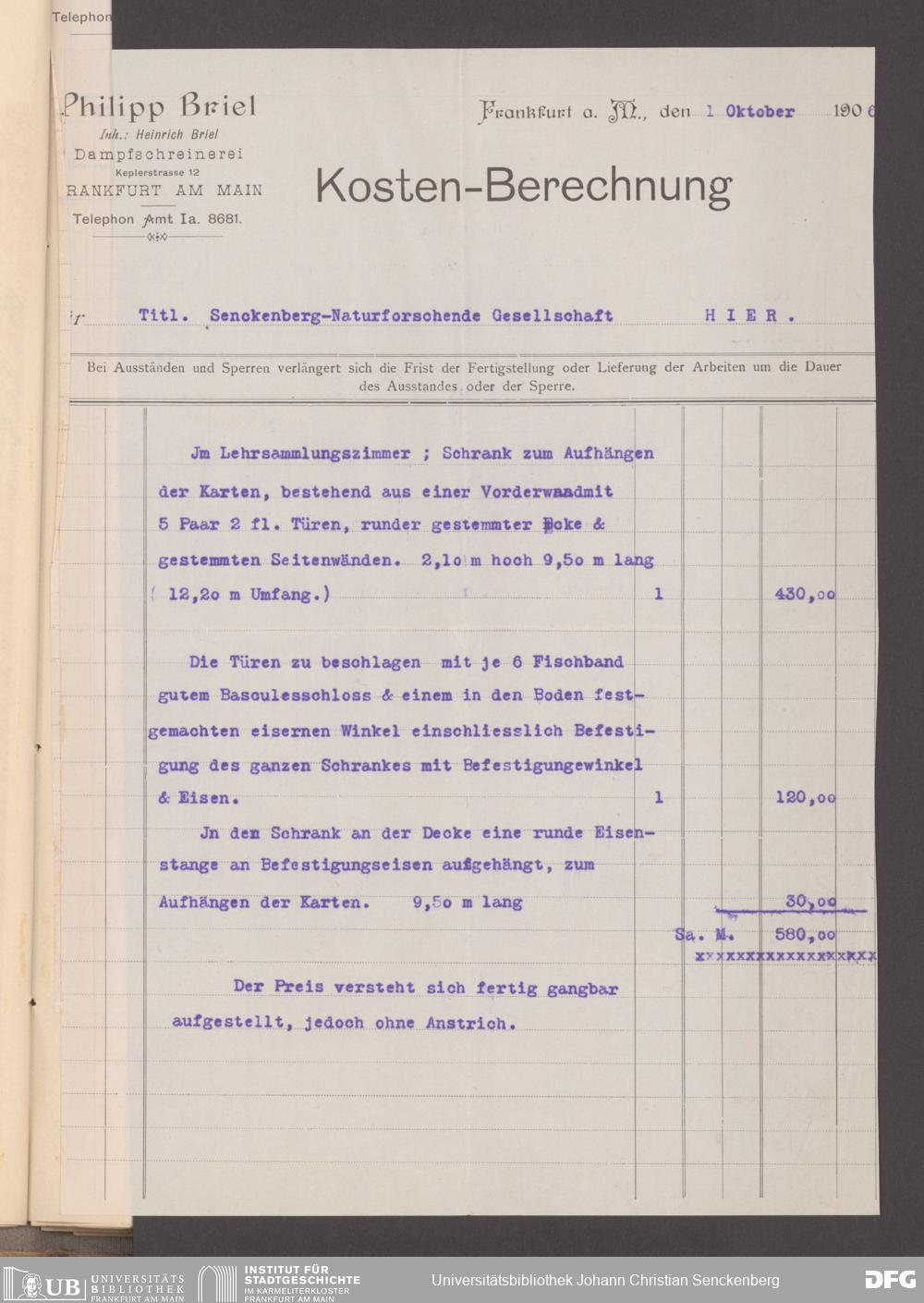 V176 Senckenberg Gesellschaft für Naturforschung, 130 - Beschaffung der Inneneinrichtung für den Neubau des Senckenbergmuseums