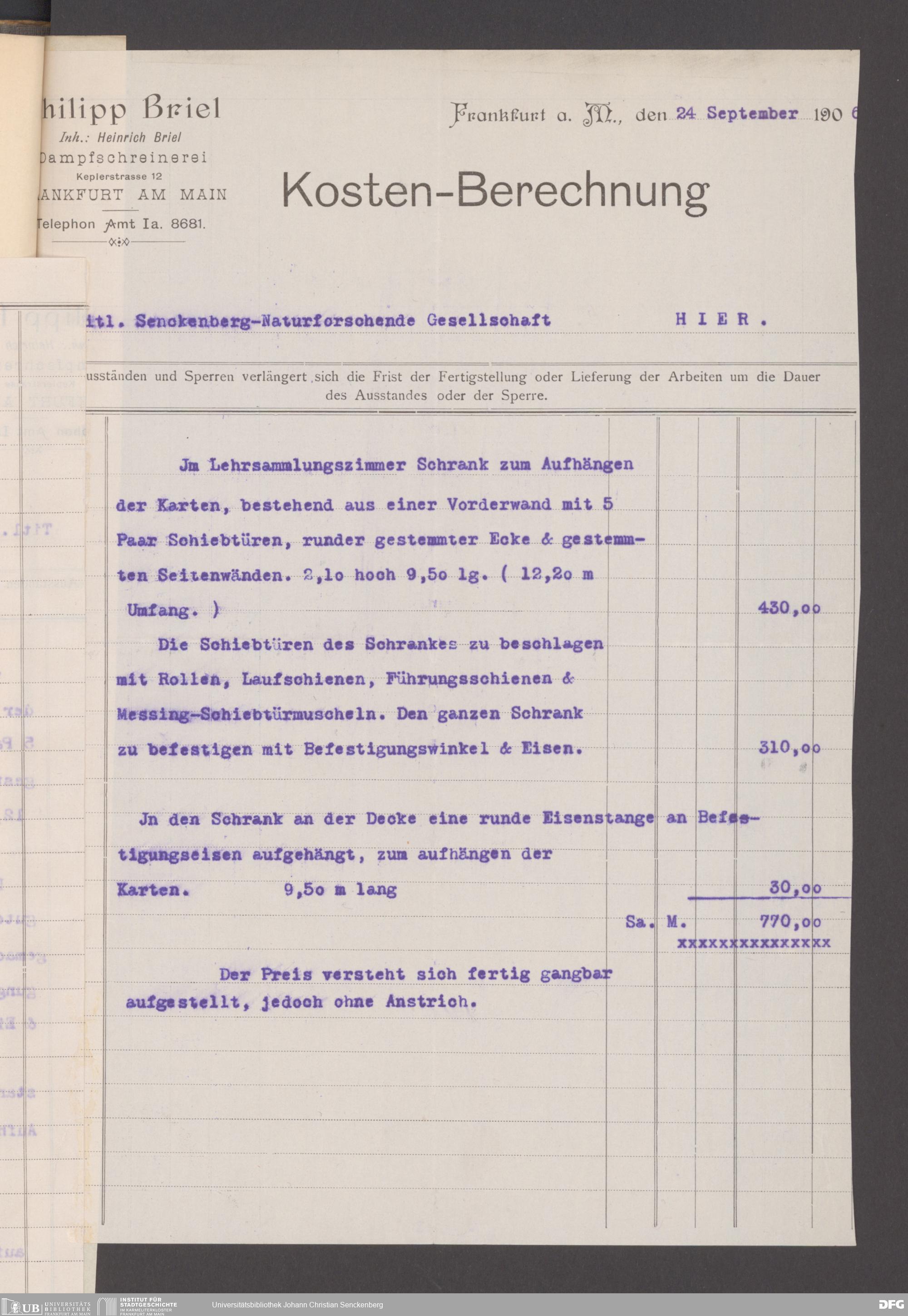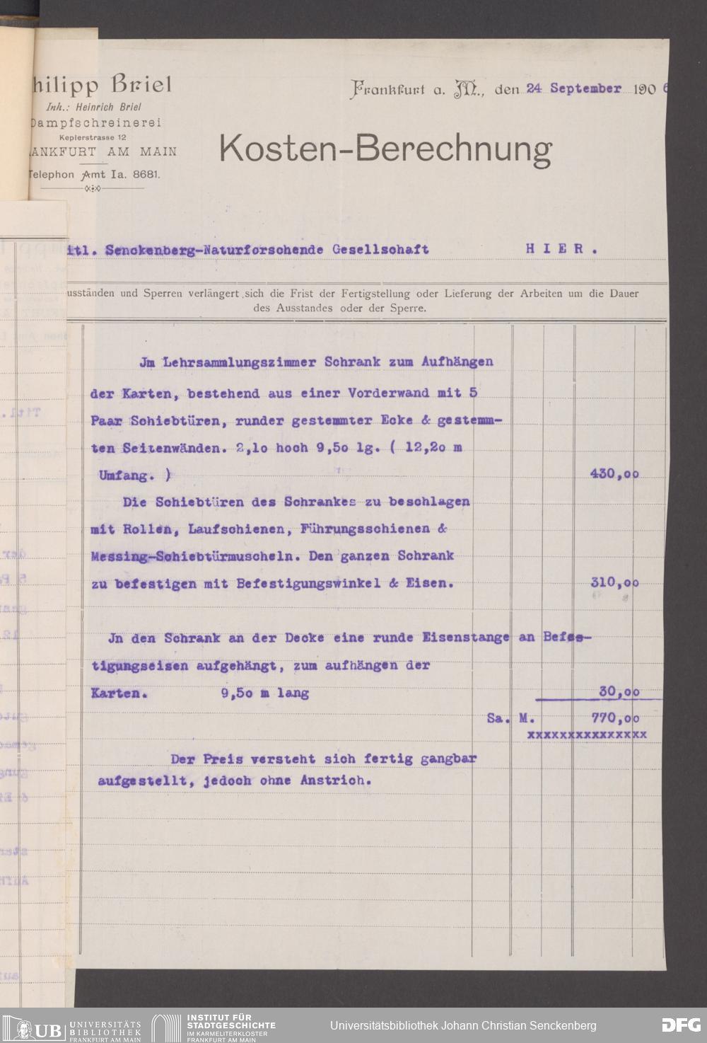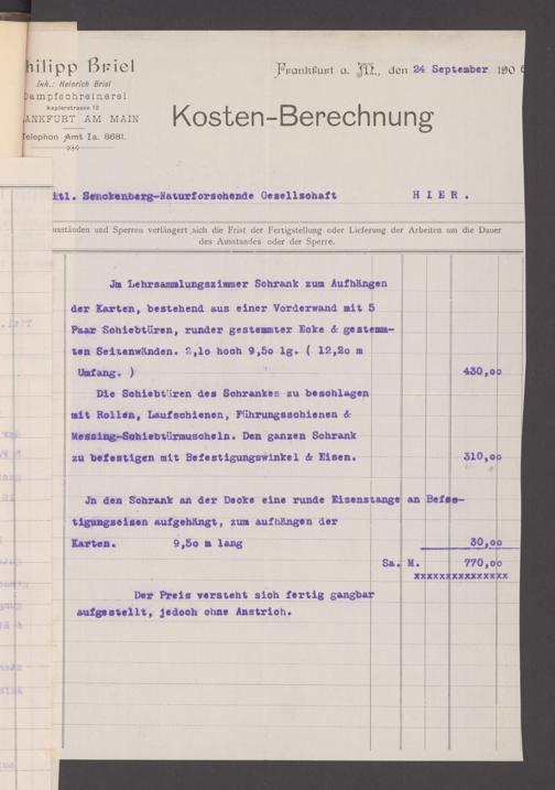 V176 Senckenberg Gesellschaft für Naturforschung, 130 - Beschaffung der Inneneinrichtung für den Neubau des Senckenbergmuseums