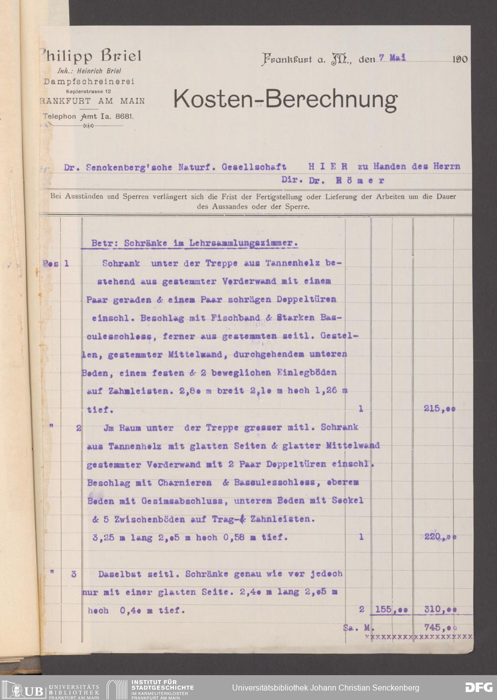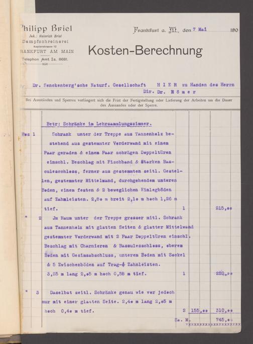V176 Senckenberg Gesellschaft für Naturforschung, 130 - Beschaffung der Inneneinrichtung für den Neubau des Senckenbergmuseums