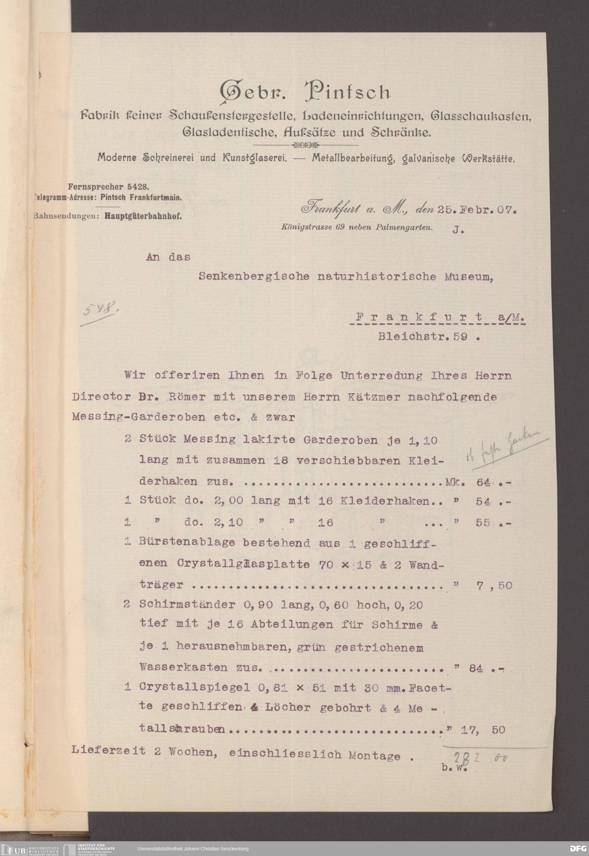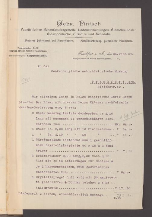 V176 Senckenberg Gesellschaft für Naturforschung, 130 - Beschaffung der Inneneinrichtung für den Neubau des Senckenbergmuseums