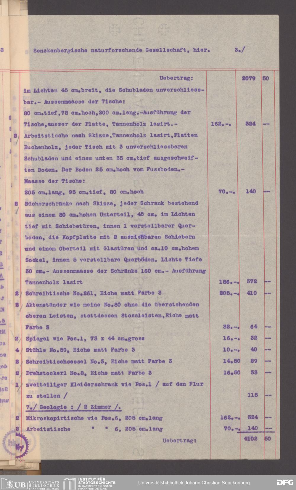 V176 Senckenberg Gesellschaft für Naturforschung, 130 - Beschaffung der Inneneinrichtung für den Neubau des Senckenbergmuseums