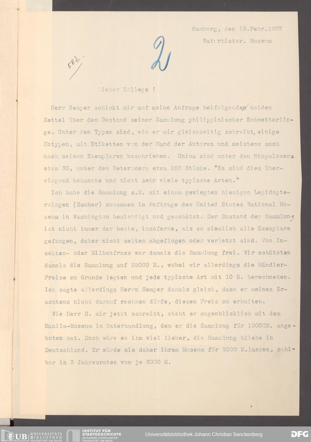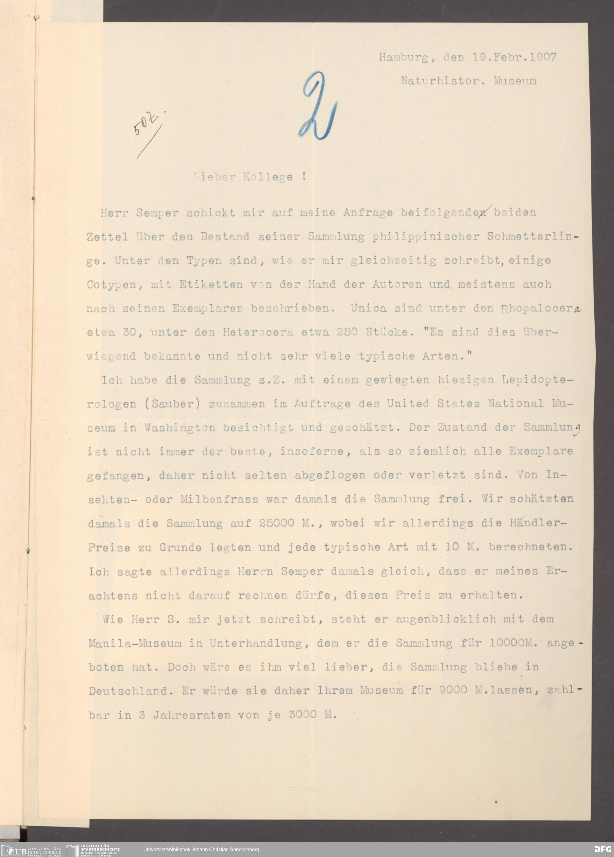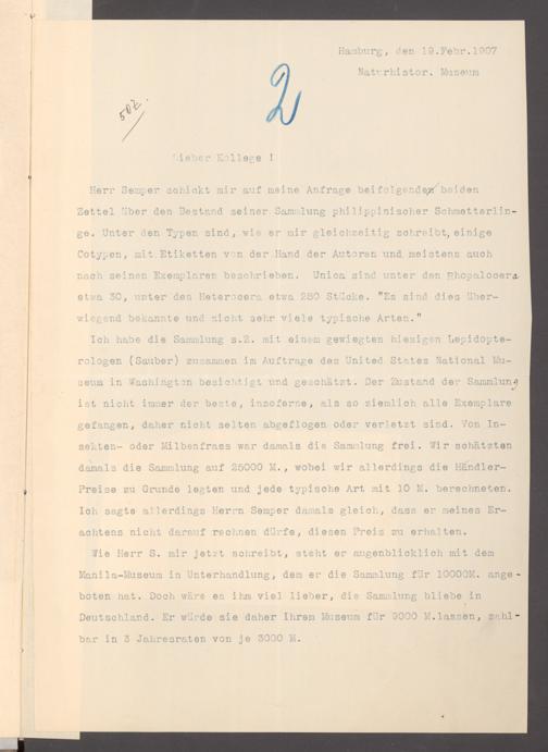 V176 Senckenberg Gesellschaft für Naturforschung, 131 - Ankauf und Tausch zoologischer Exponate, Bd. 2