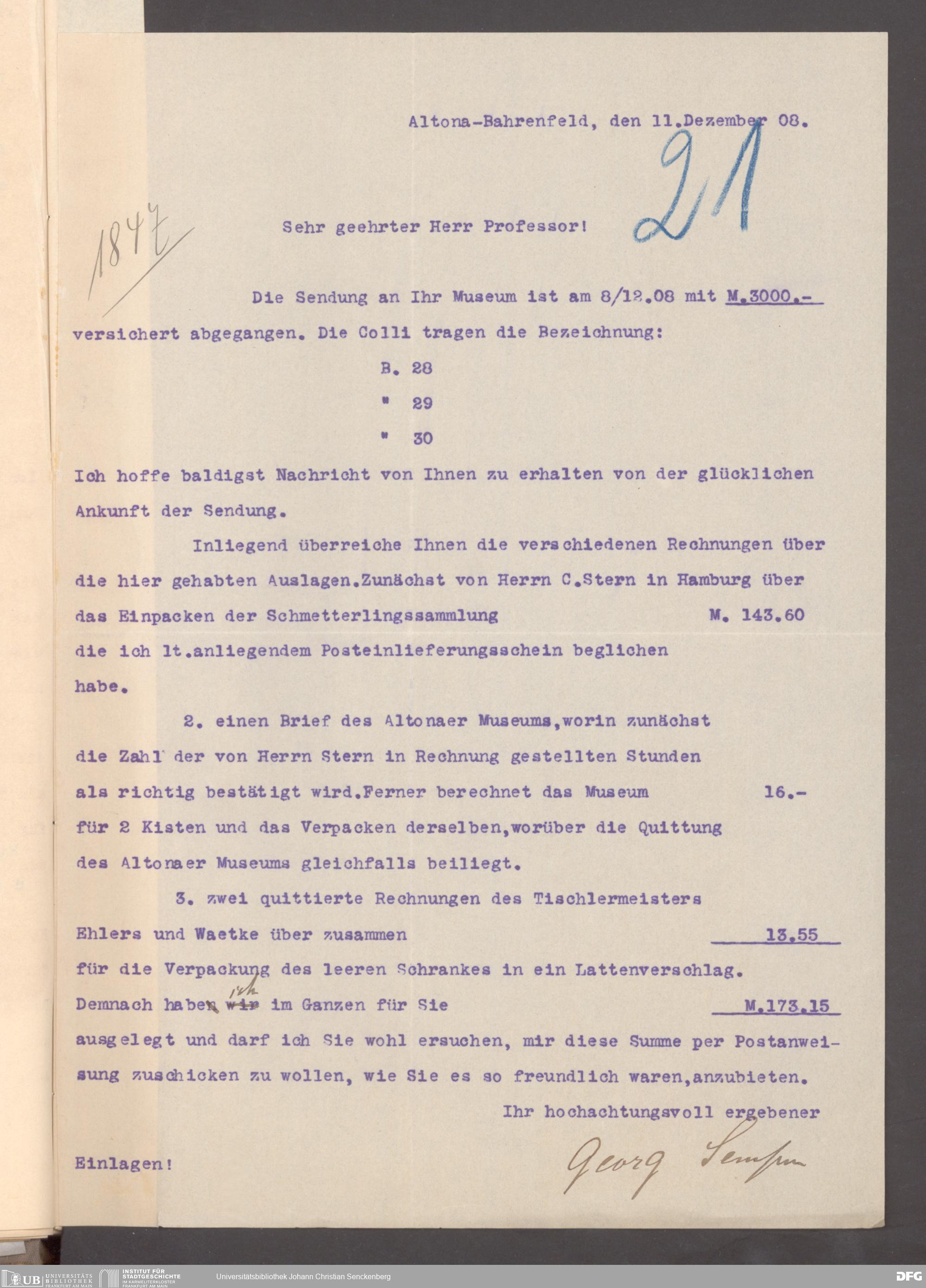 V176 Senckenberg Gesellschaft für Naturforschung, 131 - Ankauf und Tausch zoologischer Exponate, Bd. 2