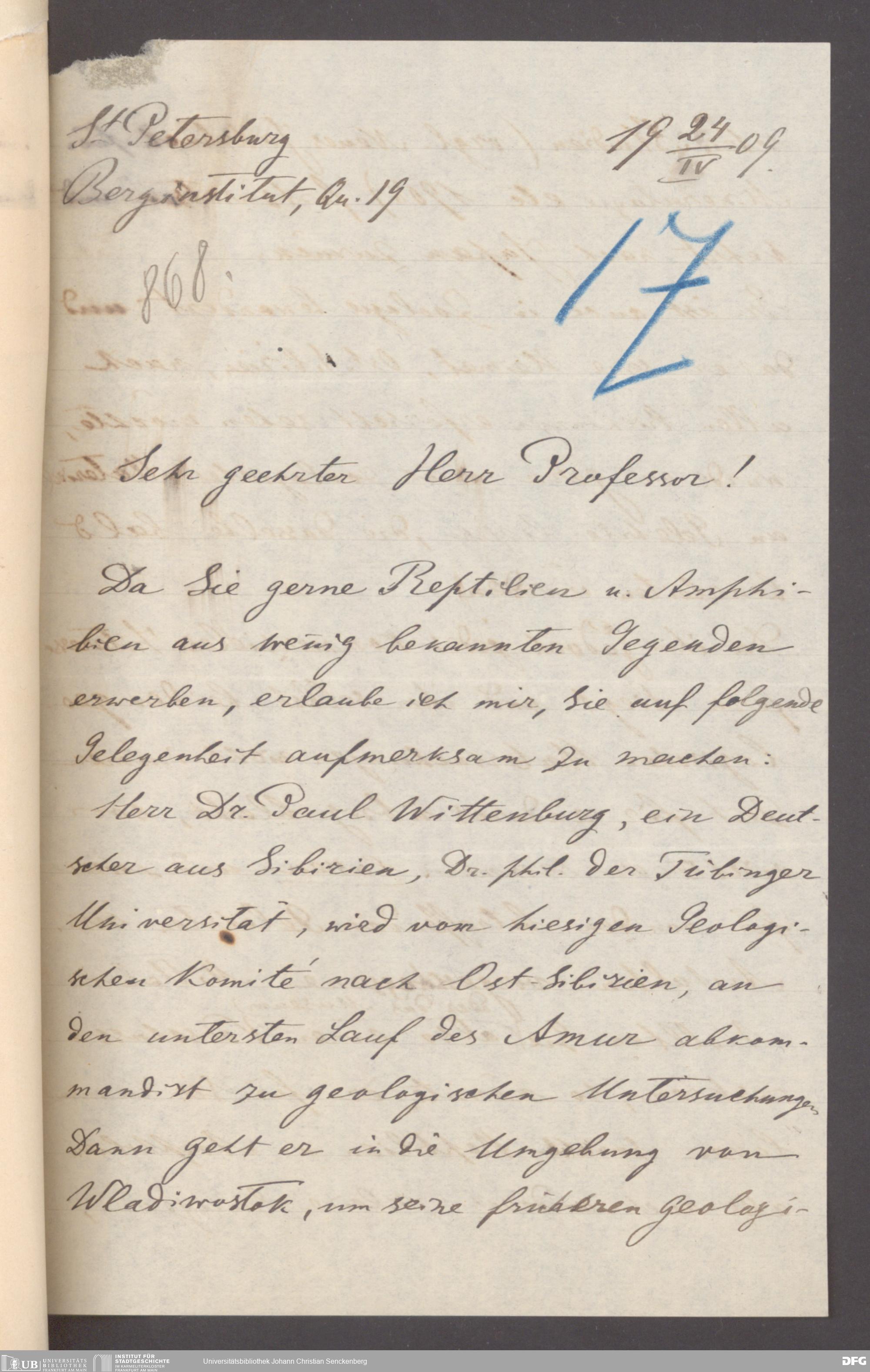 V176 Senckenberg Gesellschaft für Naturforschung, 131 - Ankauf und Tausch zoologischer Exponate, Bd. 2