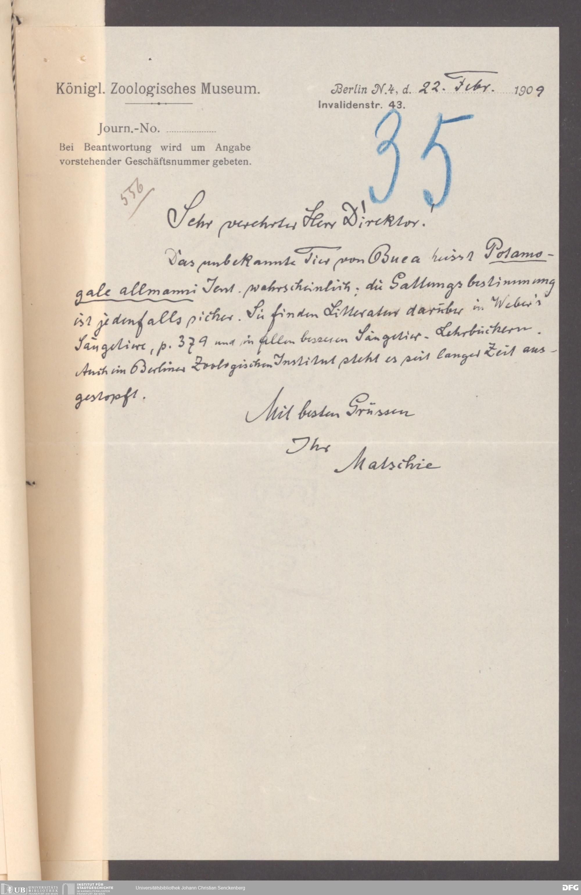 V176 Senckenberg Gesellschaft für Naturforschung, 131 - Ankauf und Tausch zoologischer Exponate, Bd. 2