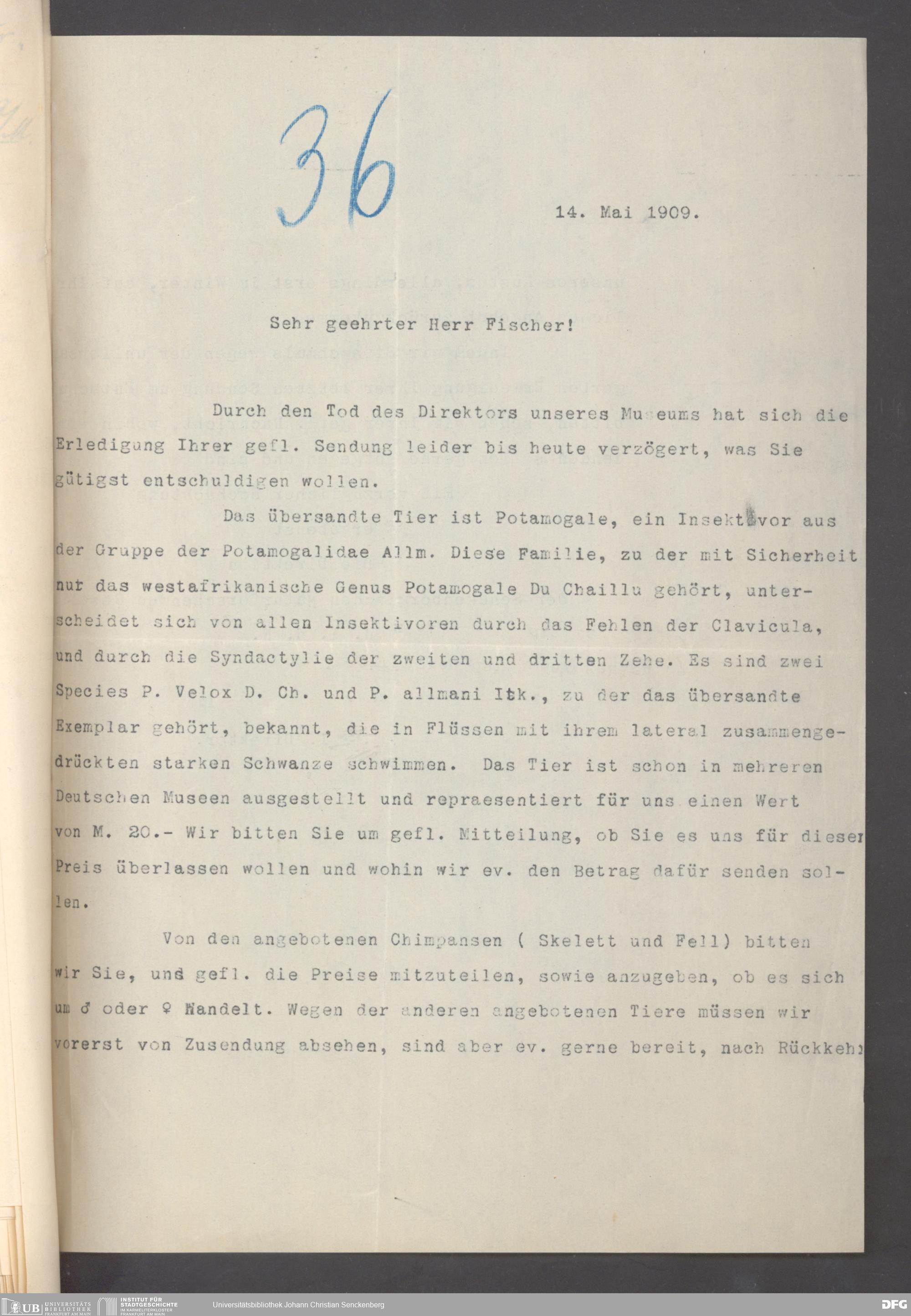 V176 Senckenberg Gesellschaft für Naturforschung, 131 - Ankauf und Tausch zoologischer Exponate, Bd. 2