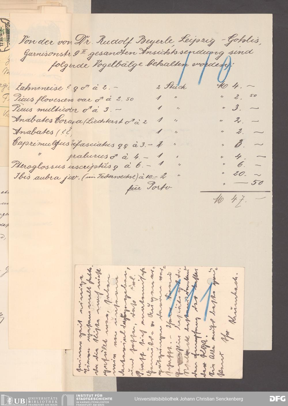 V176 Senckenberg Gesellschaft für Naturforschung, 131 - Ankauf und Tausch zoologischer Exponate, Bd. 2