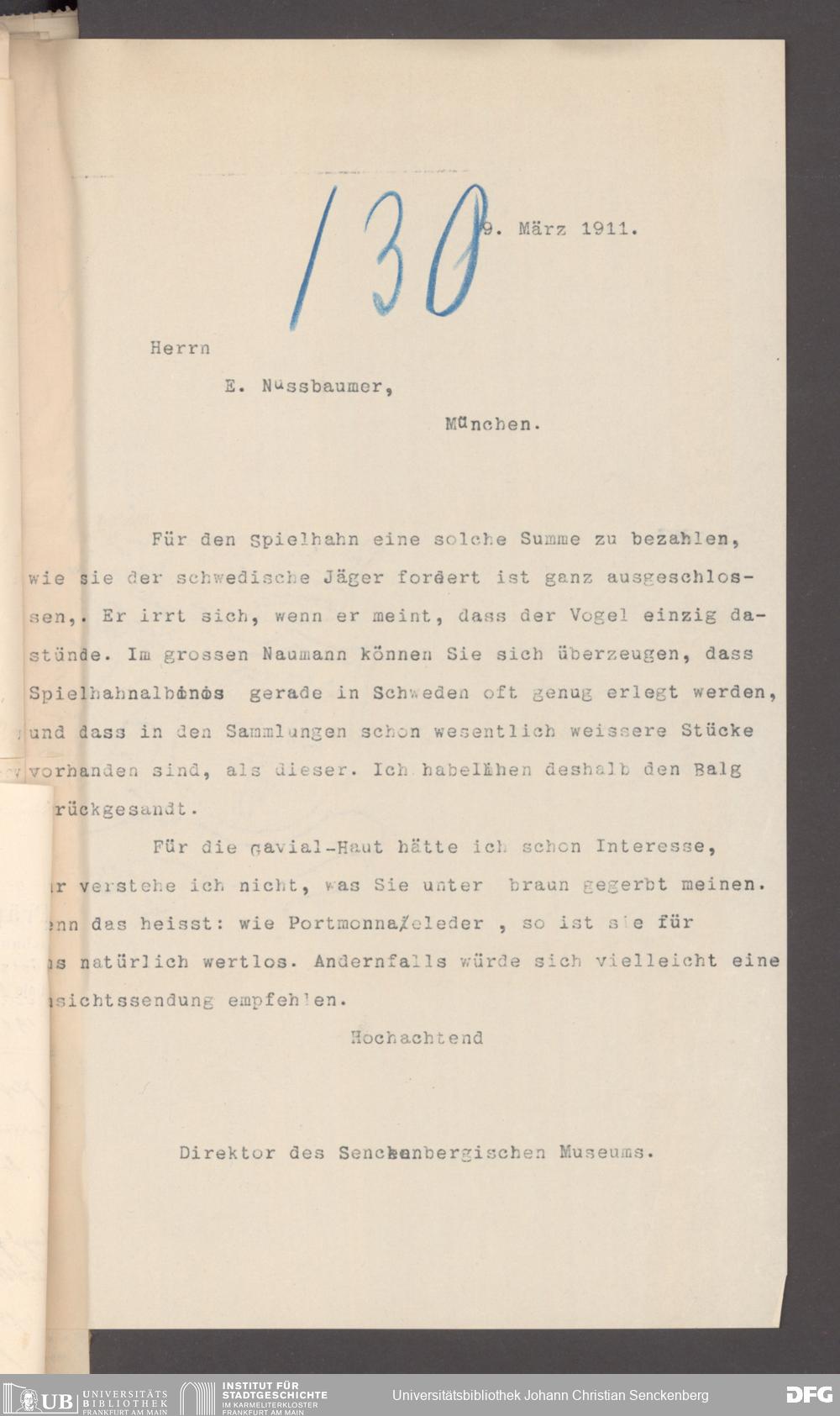 V176 Senckenberg Gesellschaft für Naturforschung, 131 - Ankauf und Tausch zoologischer Exponate, Bd. 2