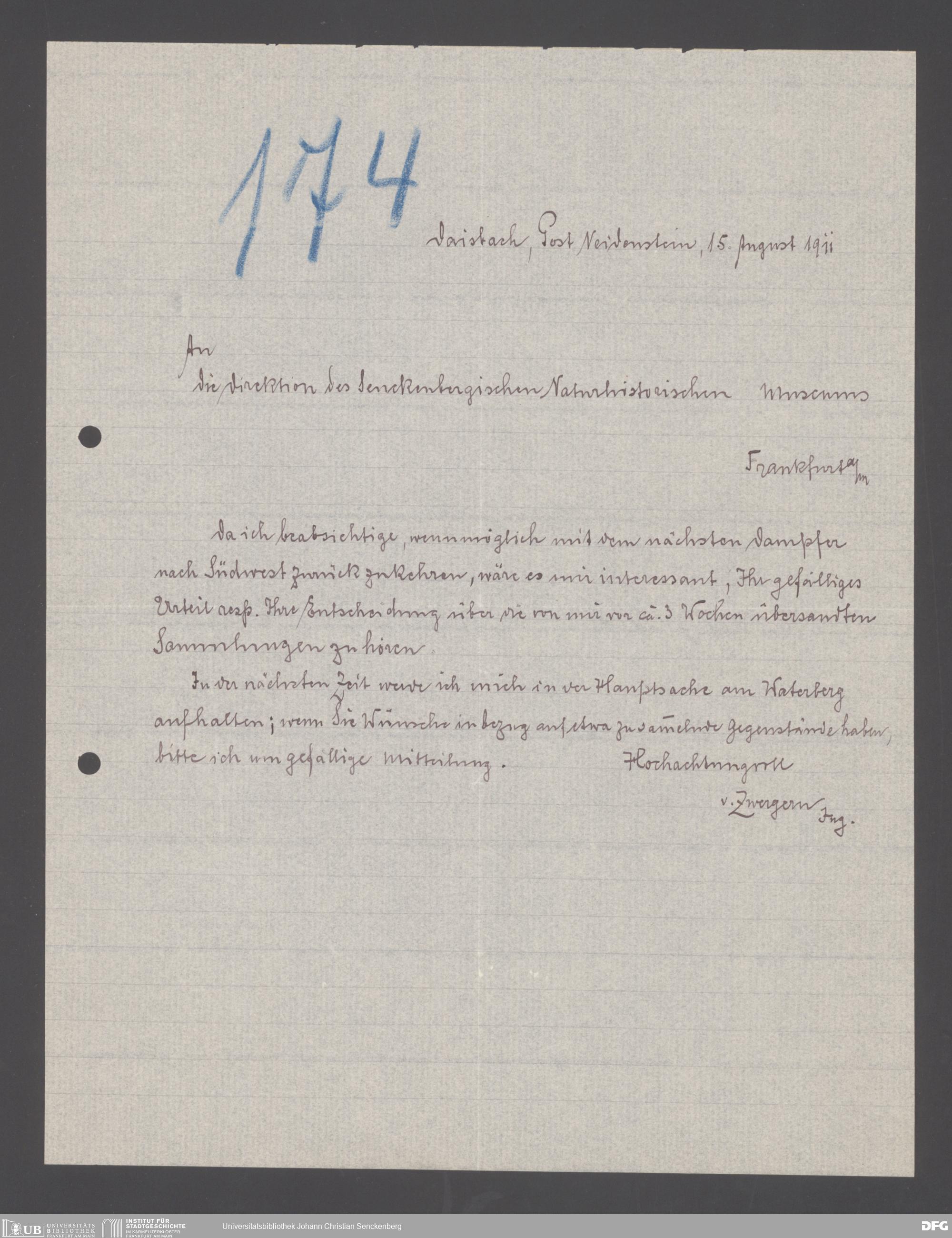 V176 Senckenberg Gesellschaft für Naturforschung, 131 - Ankauf und Tausch zoologischer Exponate, Bd. 2
