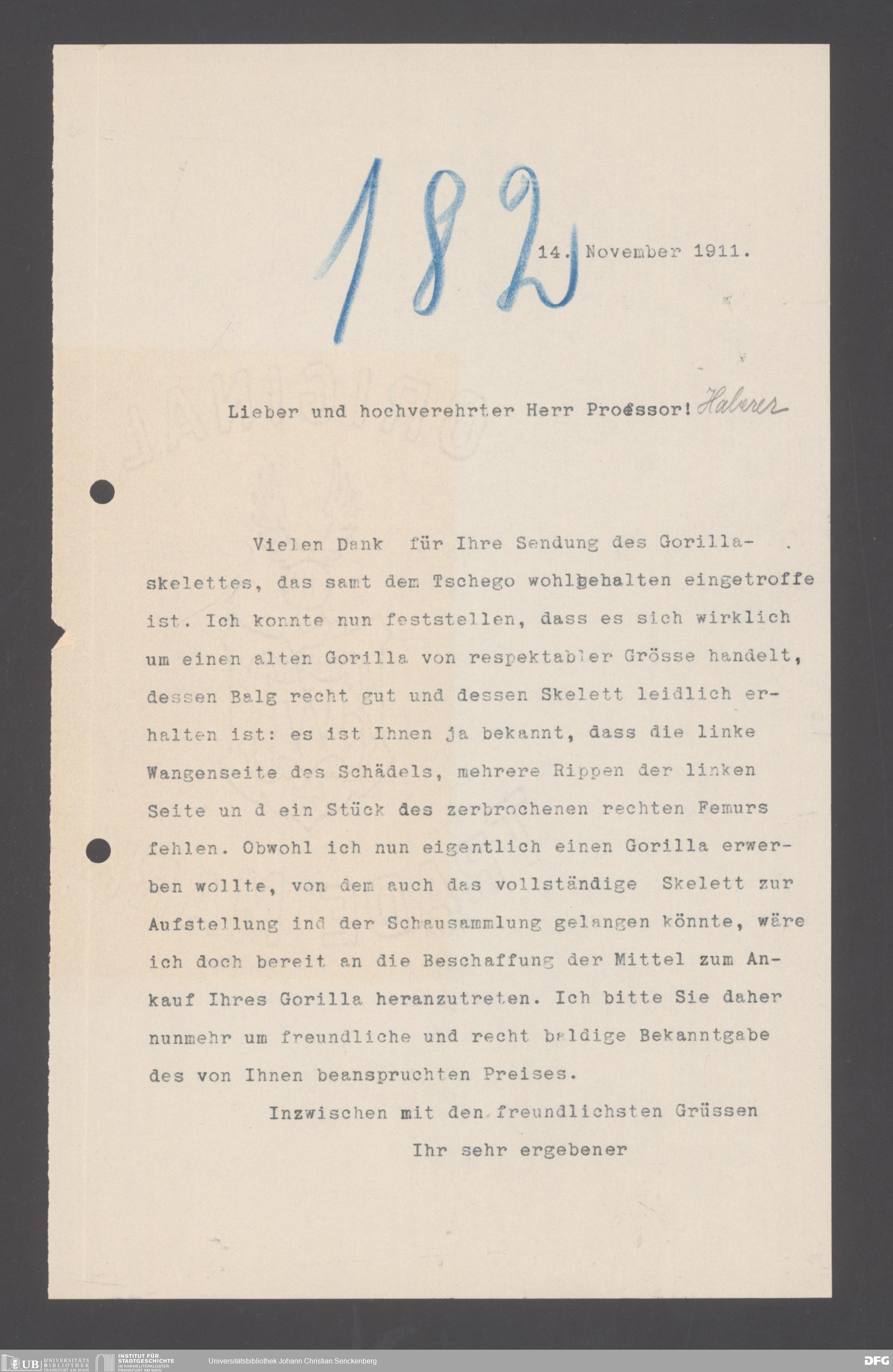 V176 Senckenberg Gesellschaft für Naturforschung, 131 - Ankauf und Tausch zoologischer Exponate, Bd. 2