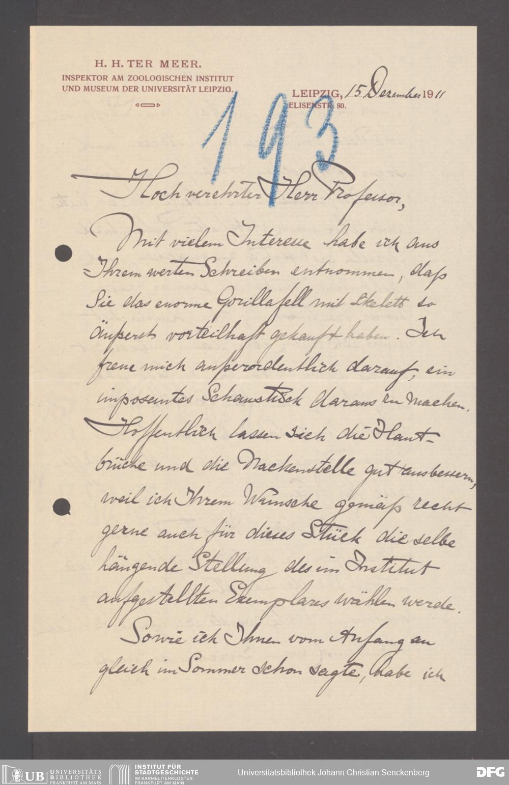 V176 Senckenberg Gesellschaft für Naturforschung, 131 - Ankauf und Tausch zoologischer Exponate, Bd. 2