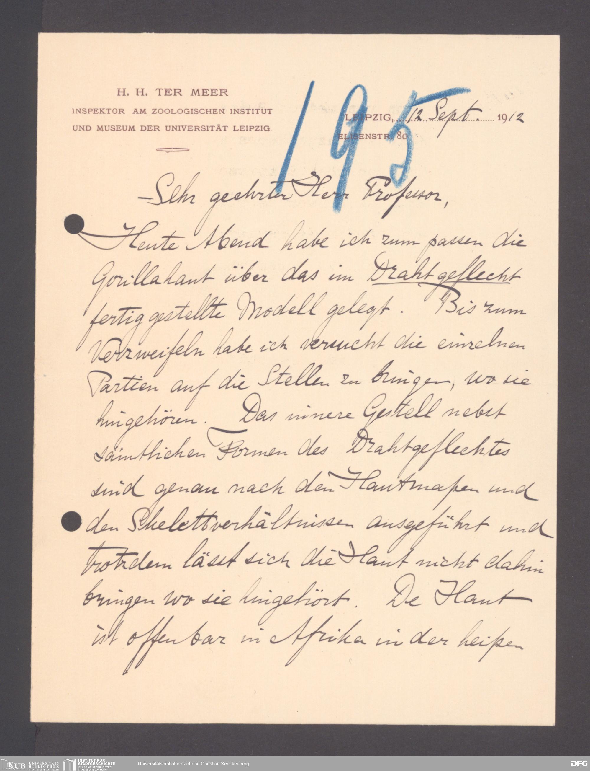 V176 Senckenberg Gesellschaft für Naturforschung, 131 - Ankauf und Tausch zoologischer Exponate, Bd. 2