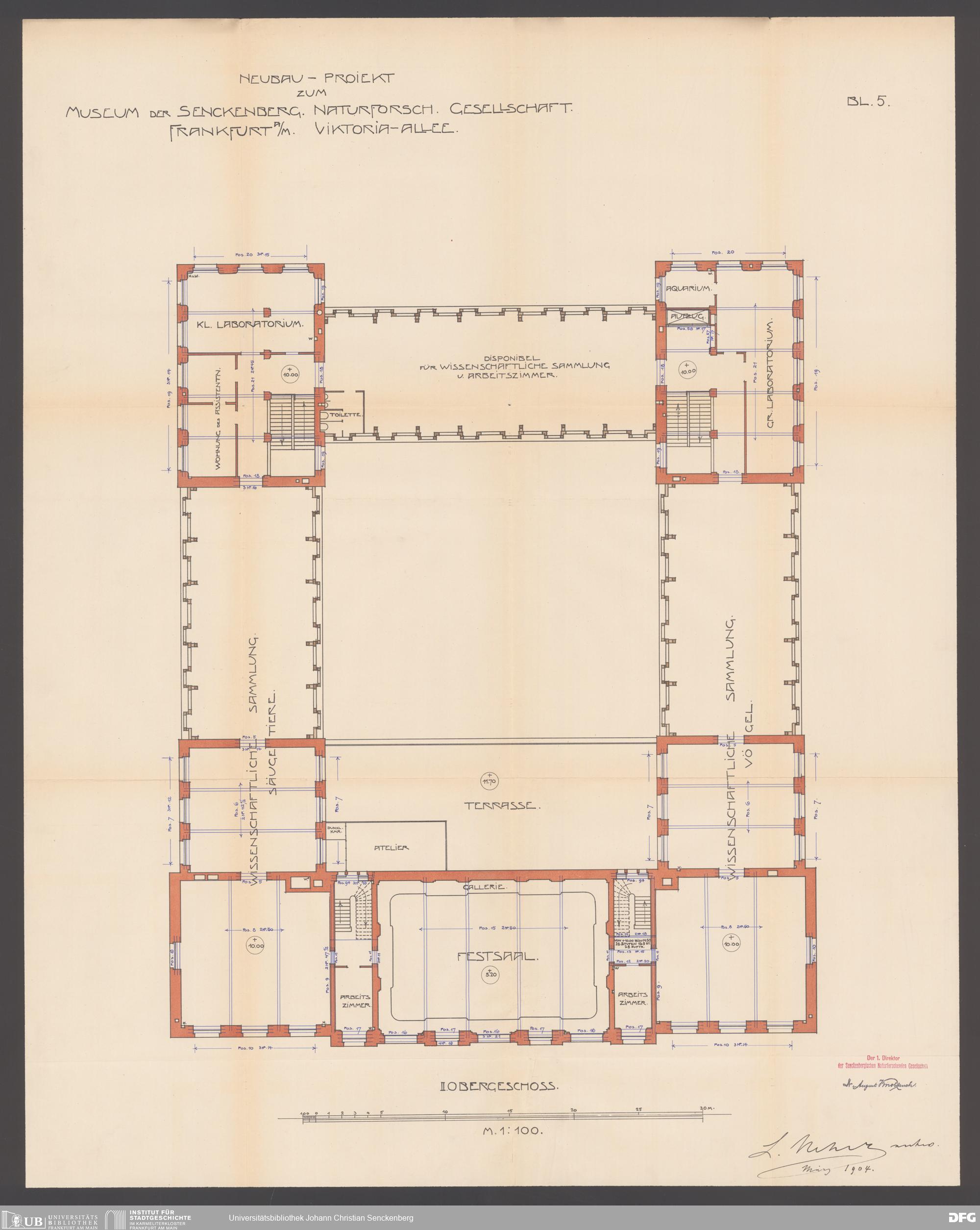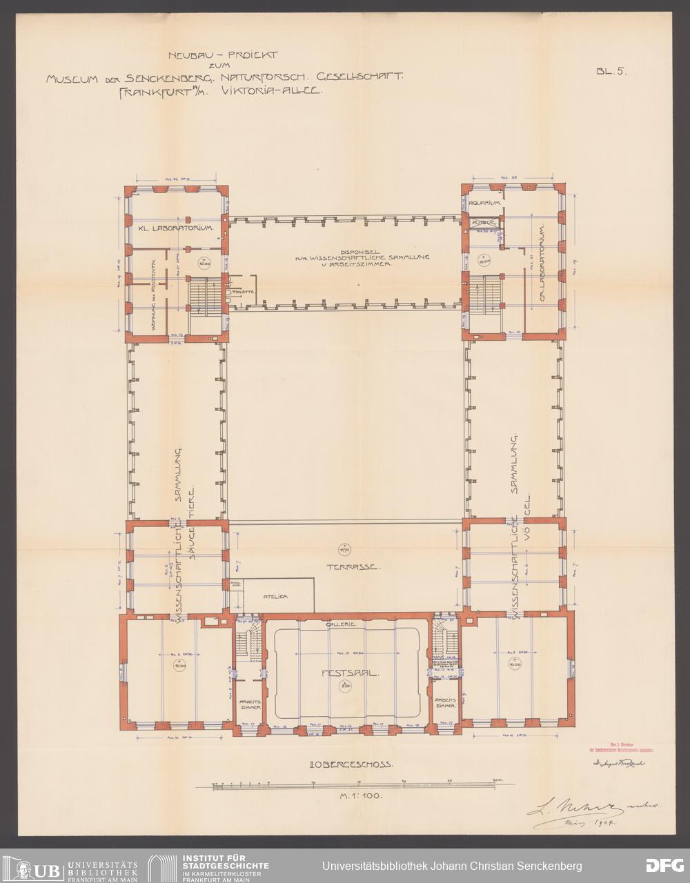 V176 Senckenberg Gesellschaft für Naturforschung, 132 - Genehmigte Baupläne für den Hauptbau des Neubaus des Senckenbergmuseums