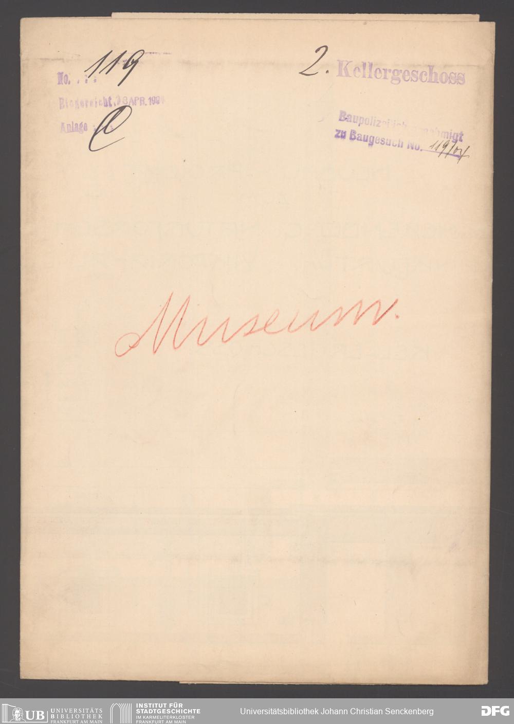 V176 Senckenberg Gesellschaft für Naturforschung, 132 - Genehmigte Baupläne für den Hauptbau des Neubaus des Senckenbergmuseums