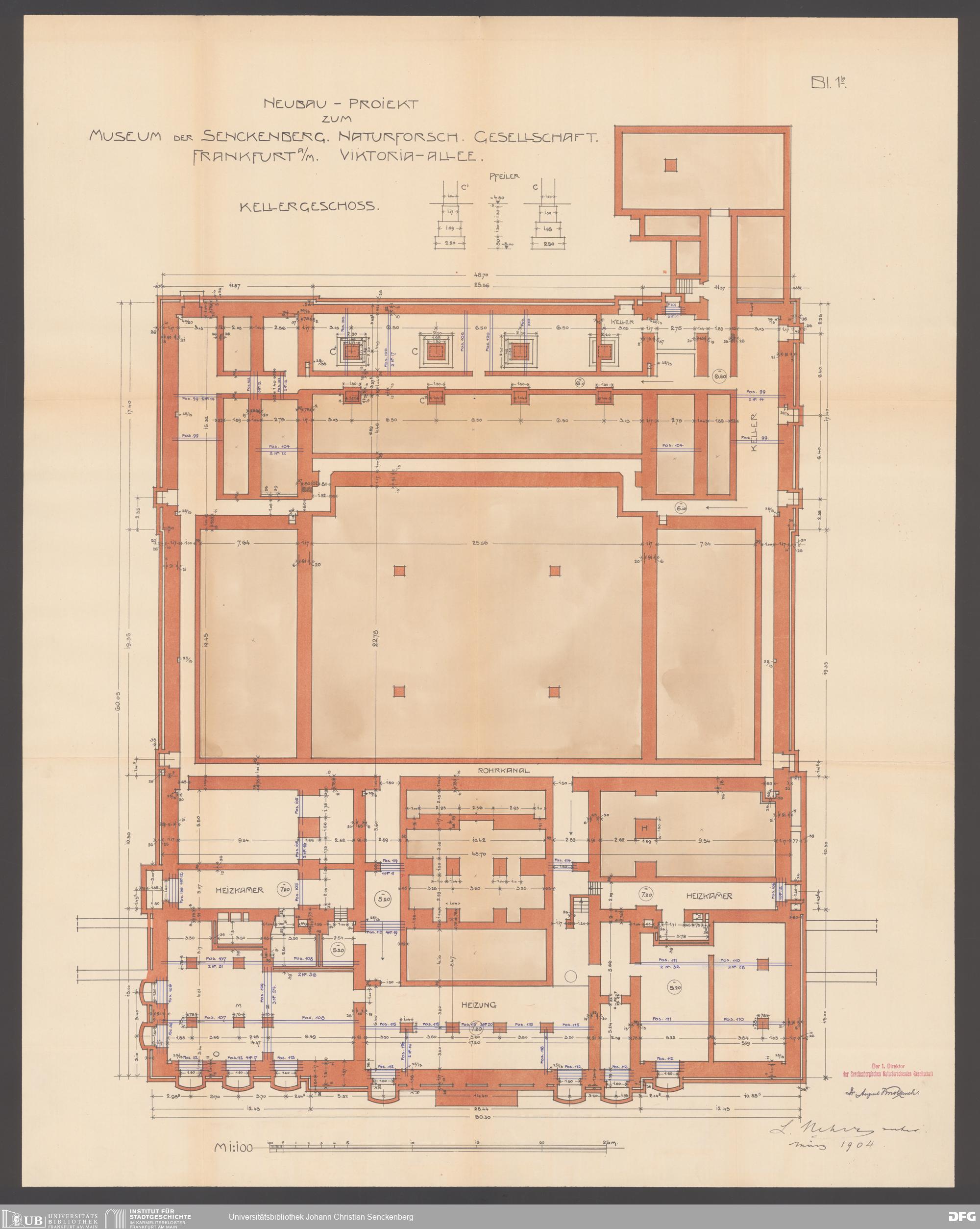V176 Senckenberg Gesellschaft für Naturforschung, 132 - Genehmigte Baupläne für den Hauptbau des Neubaus des Senckenbergmuseums
