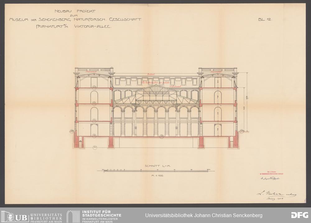V176 Senckenberg Gesellschaft für Naturforschung, 132 - Genehmigte Baupläne für den Hauptbau des Neubaus des Senckenbergmuseums