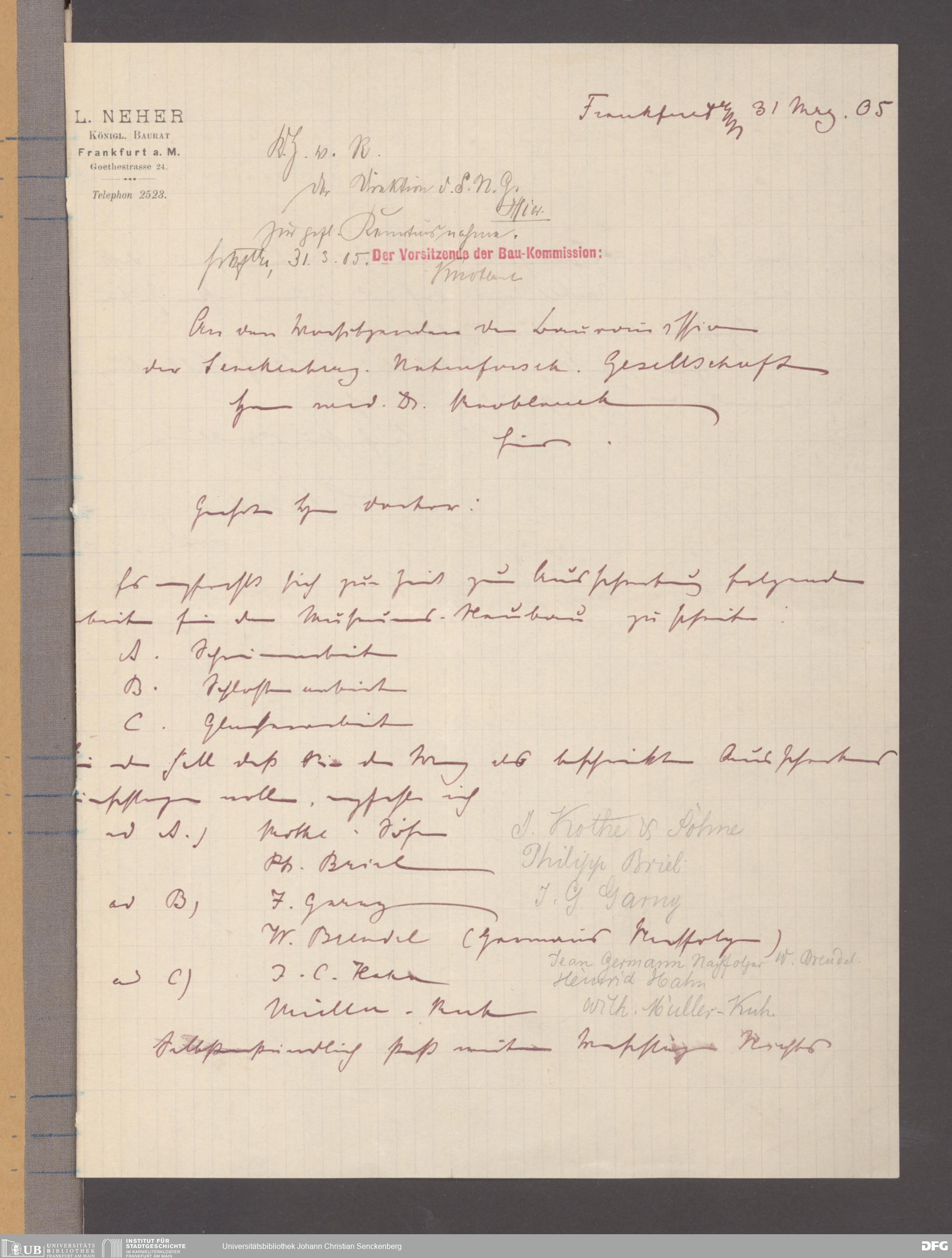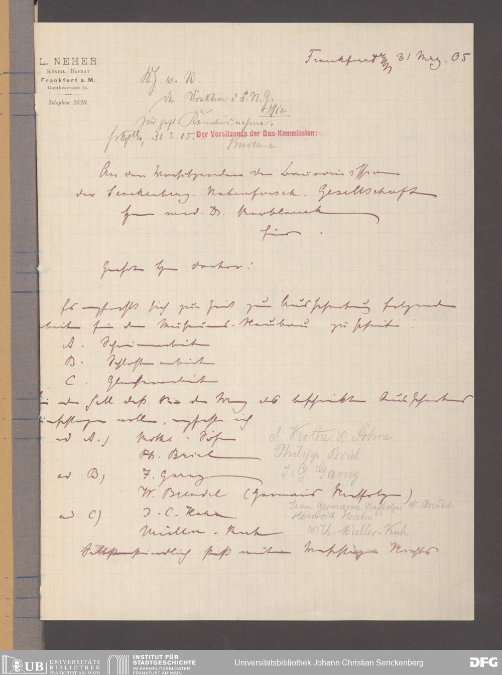 V176 Senckenberg Gesellschaft für Naturforschung, 135 - Kommission für den Neubau des Senckenbermuseums