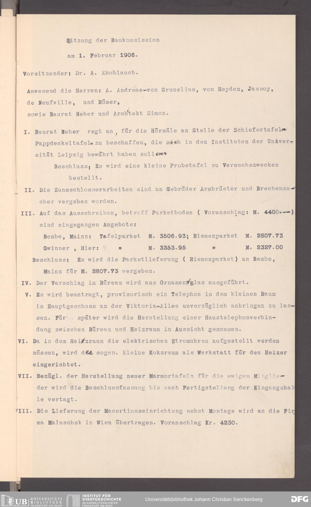 V176 Senckenberg Gesellschaft für Naturforschung, 135 - Kommission für den Neubau des Senckenbermuseums