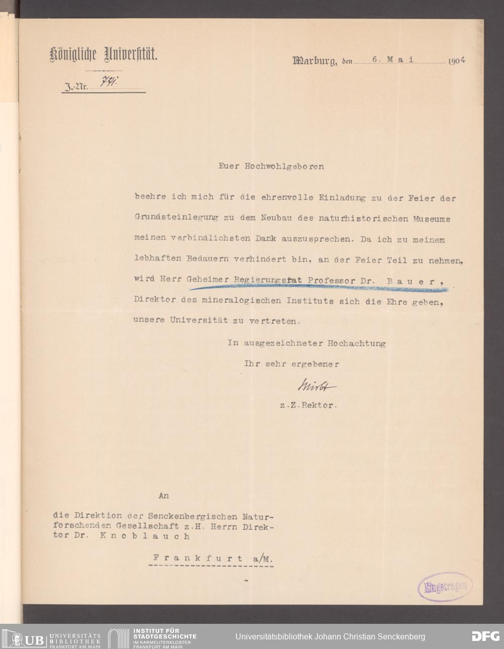 V176 Senckenberg Gesellschaft für Naturforschung, 139 - Grundsteinlegung für den Neubau des Senckenbergmuseums