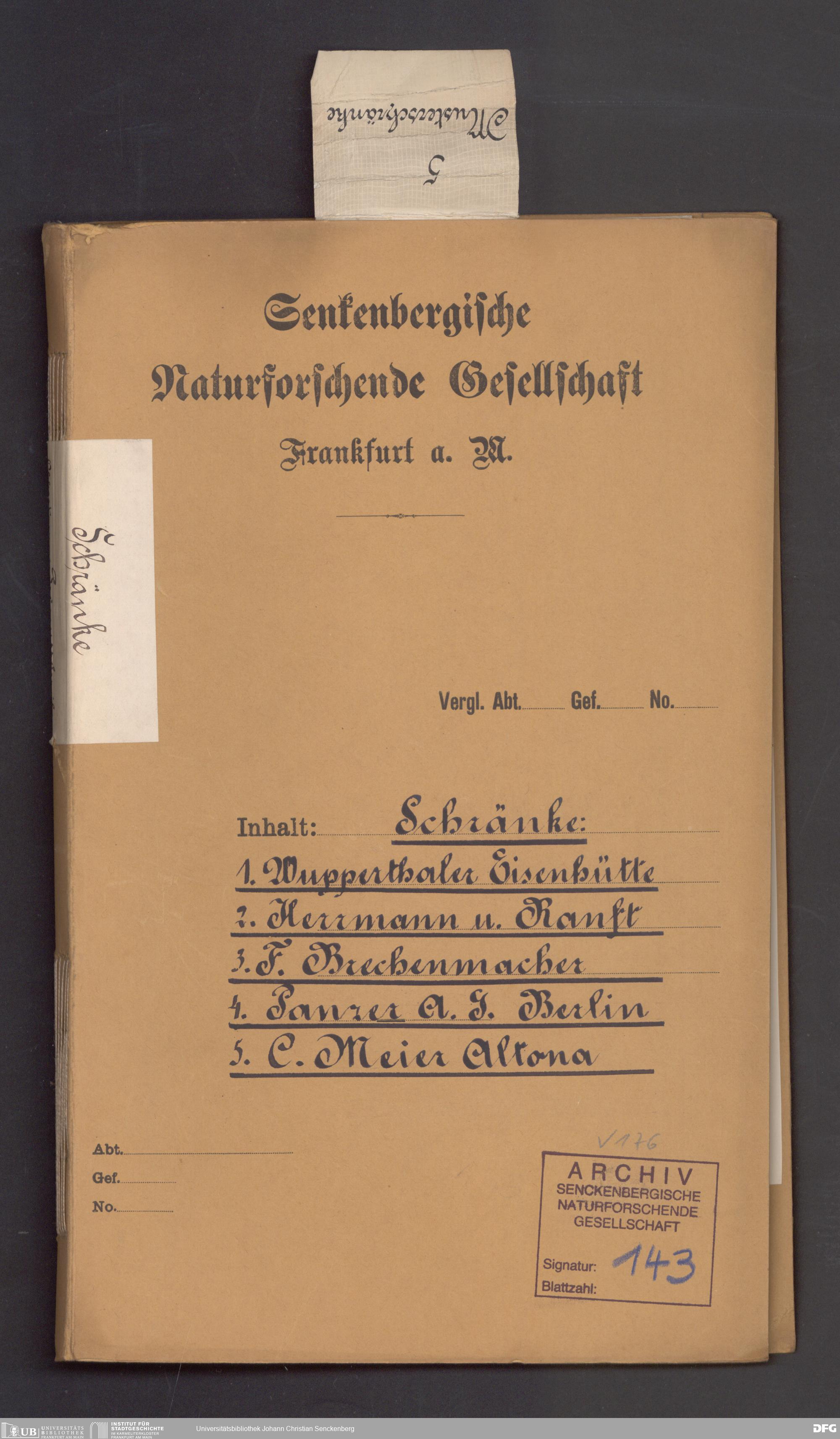 V176 Senckenberg Gesellschaft für Naturforschung, 143 - Beschaffung von Ausstellungsschränken für die Schausammlungen, Bd. 2