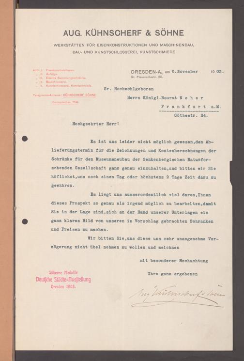 V176 Senckenberg Gesellschaft für Naturforschung, 152 - Ankauf von Museumsschränken bei der Firma August Kühnscherf und Söhne, Bd. 1
