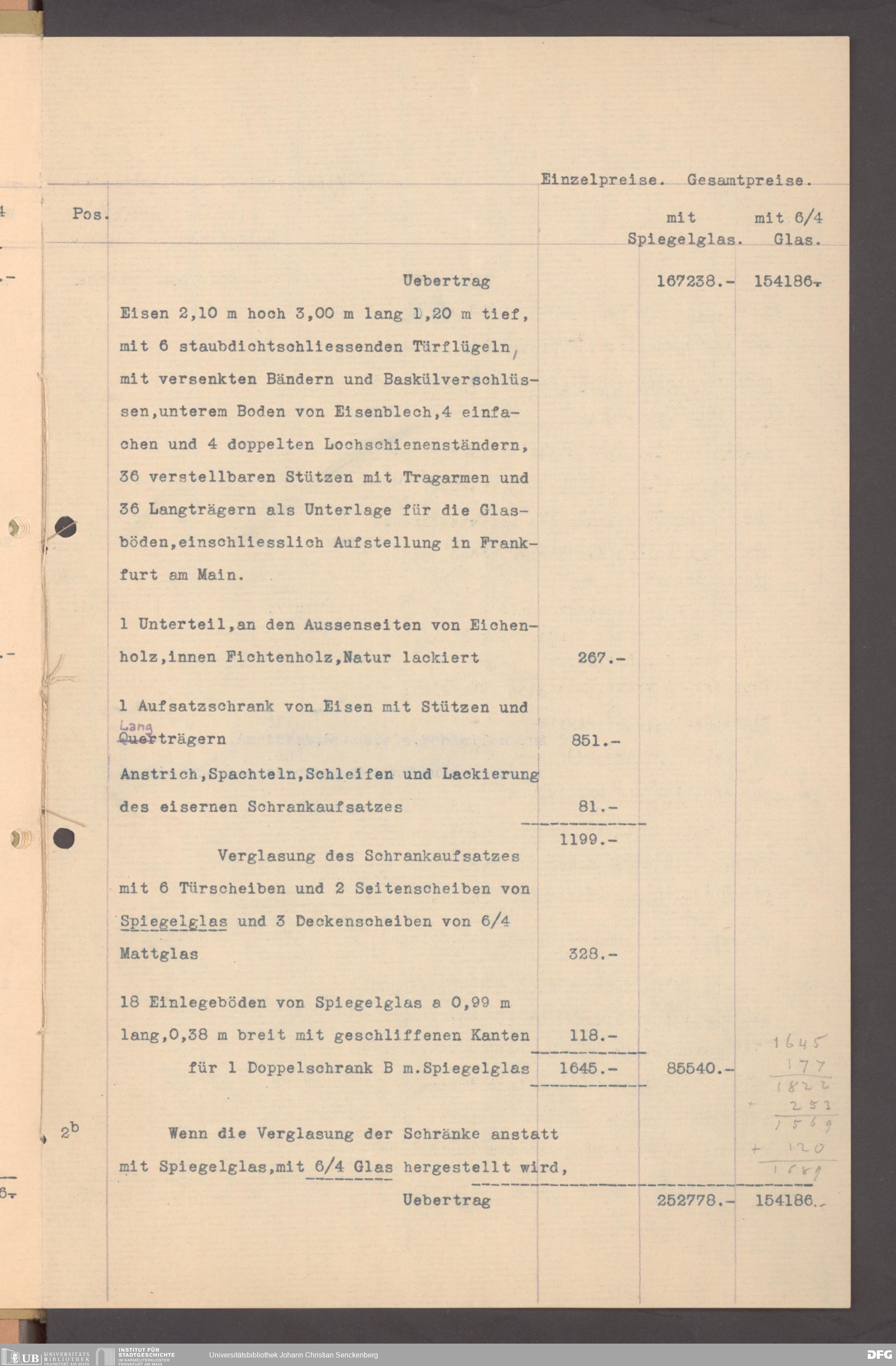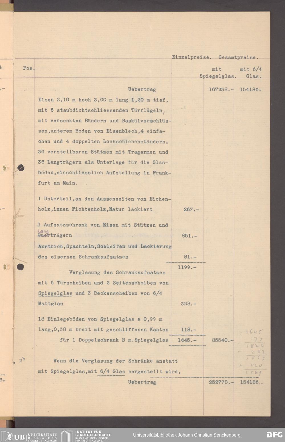 V176 Senckenberg Gesellschaft für Naturforschung, 152 - Ankauf von Museumsschränken bei der Firma August Kühnscherf und Söhne, Bd. 1