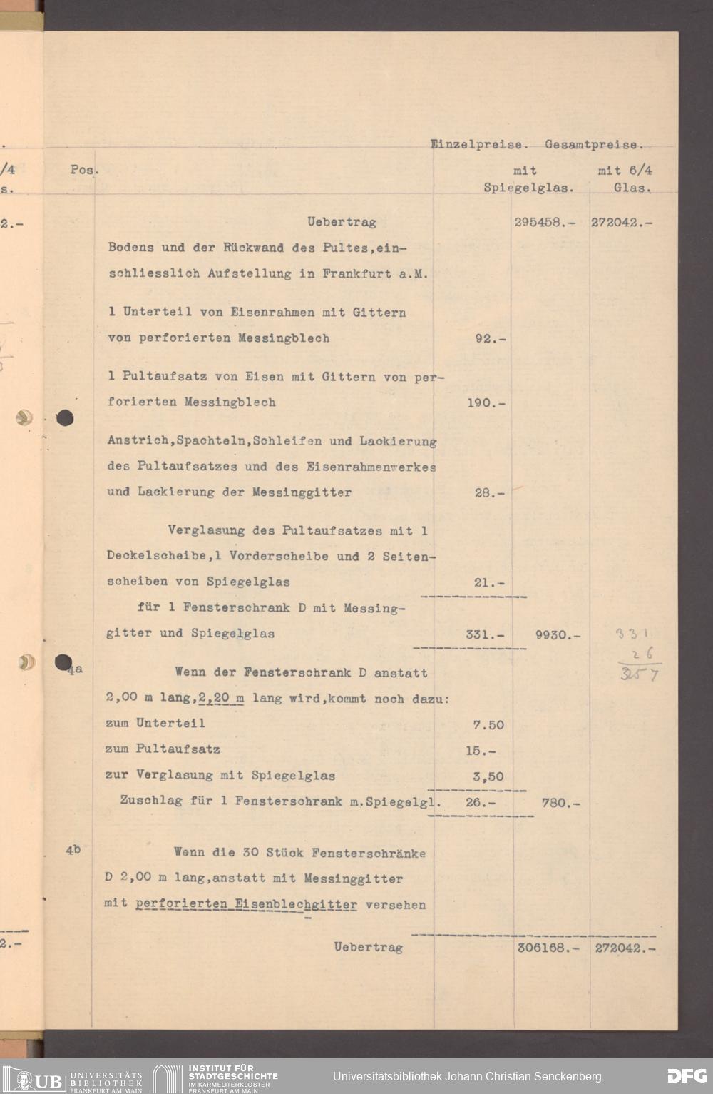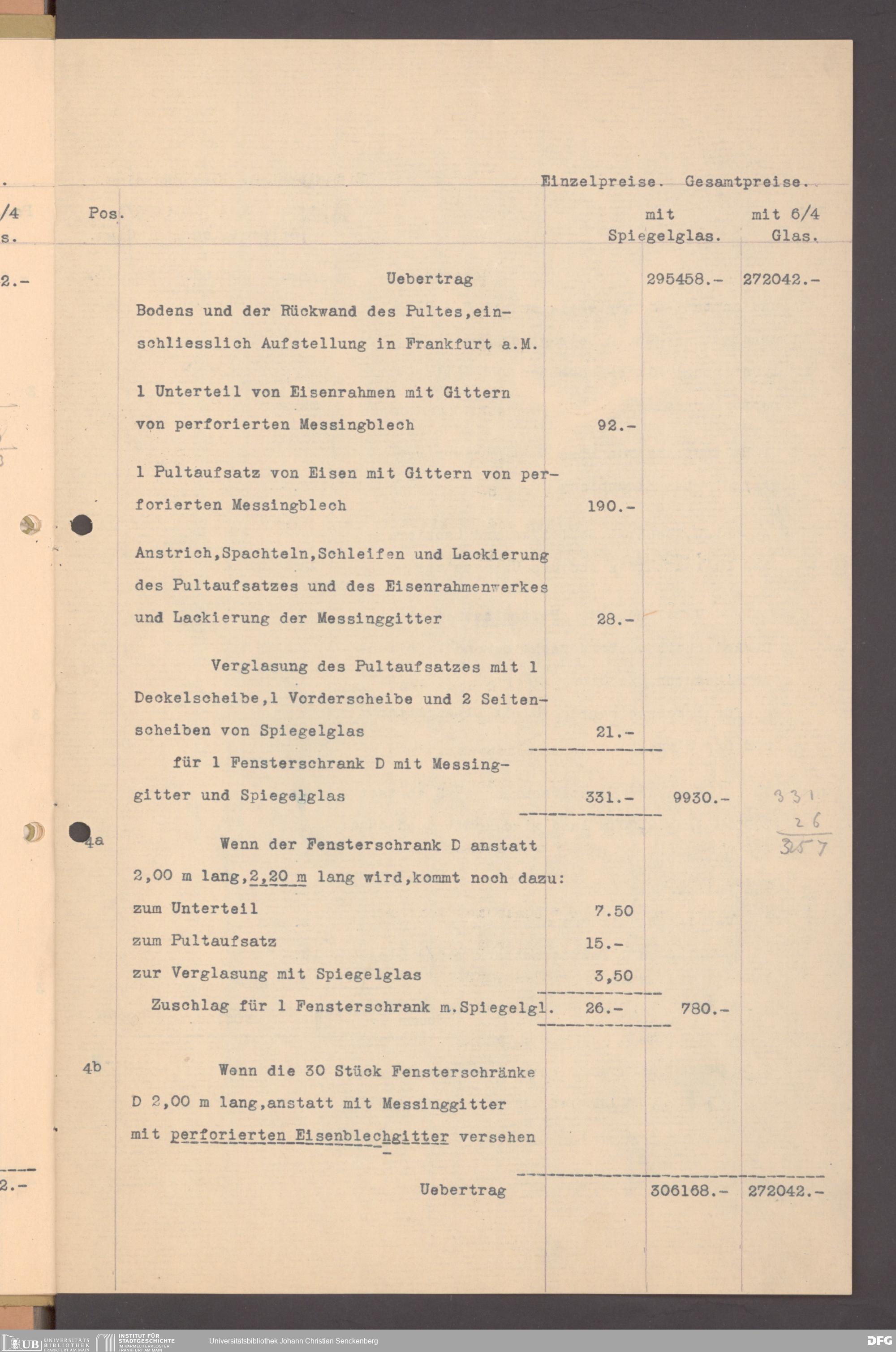 V176 Senckenberg Gesellschaft für Naturforschung, 152 - Ankauf von Museumsschränken bei der Firma August Kühnscherf und Söhne, Bd. 1